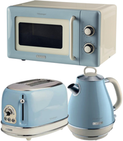 Ariete Vintage Blue Retro 1.7L Jug Kettle, 2 Slice Toaster & 800W 20L Microwave Kitchen Set