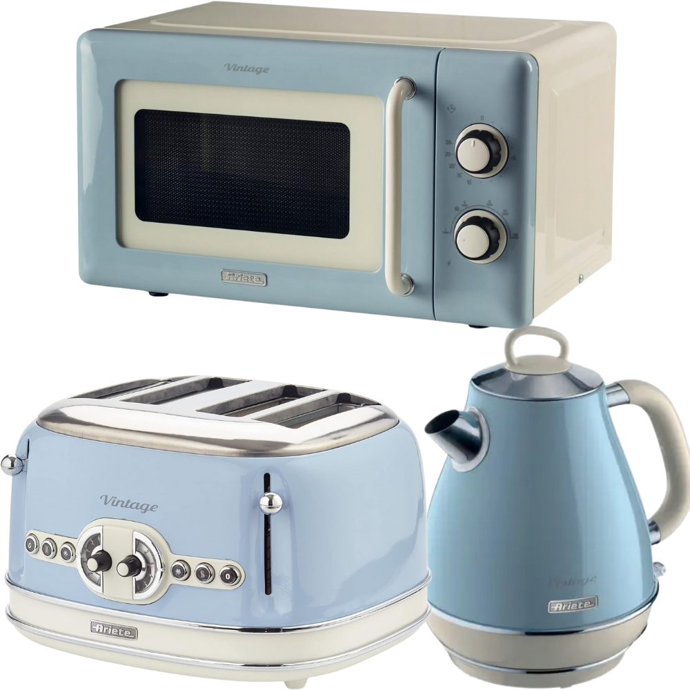 Ariete Vintage Blue 1.7L Jug Kettle, 4 Slice Toaster & 800W 20L Microwave Kitchen Set
