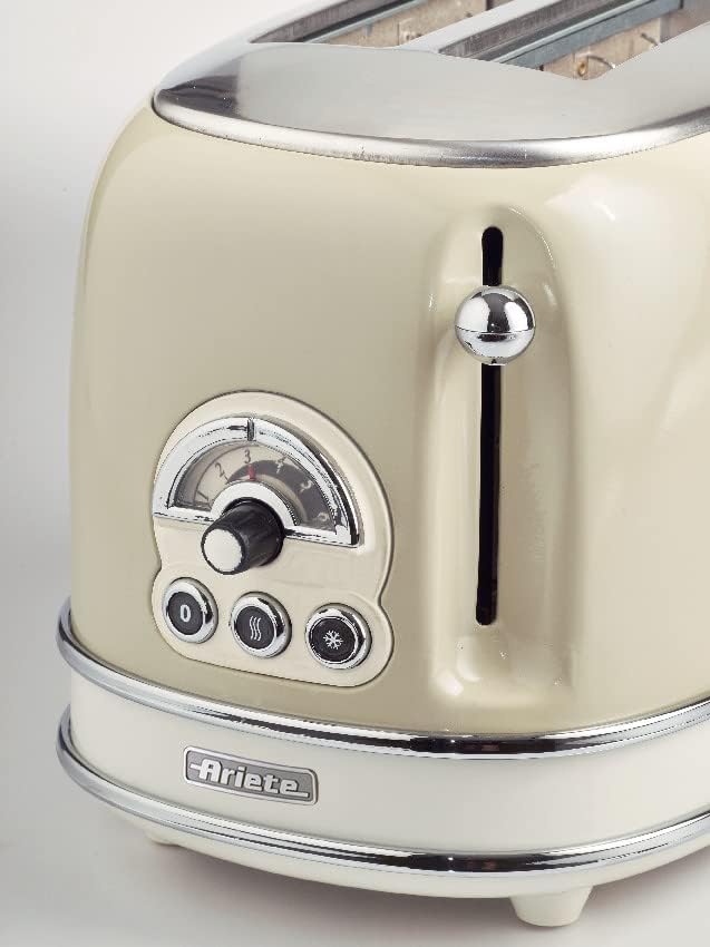 The Ariete 155 Vintage Electric Toaster is the design toaster which, with its unique shapes and pastel colours, decorates your kitchen. The compact size of this taster (30 L x 19 W x 20 H) makes it a perfect decor element for the kitchen. The Vintage electric toaster features 2 slots for browning the slices of bread at 6 different toasting levels. When the toast is ready, the automatic eject function allows you to take the slice of bread safely. The removable crumb tray ensures easy cleaning and the lower cord compartment allows you to save space. The Vintage Toaster features a sturdy design: the stainless steel outer walls in pastel colours make it a unique and unmistakable object in the panorama of small kitchen appliances. Ariete makes iconic and functional products: the Vintage Line combines Italian design with the ease of use that is the hallmark of Ariete, Italian company that is a leader in toasters for domestic use.