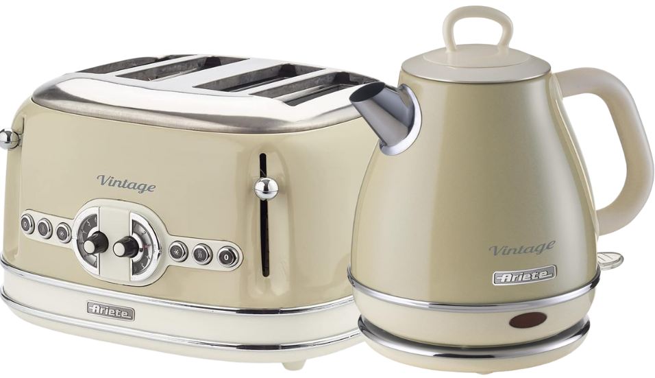 Ariete Vintage Cream Retro 1L Jug Kettle, 4 Slice Toaster & 800W 20L Microwave Kitchen Set AR6803/AR5603/AR3960. Fast Dispatch & Free Next Working Day Delivery. 2 Year ARIETE Manufacturer Guarantee