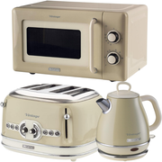 Ariete Vintage Cream Retro 1L Jug Kettle, 4 Slice Toaster & 800W 20L Microwave Kitchen Set