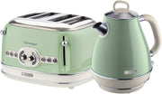 Ariete Vintage Green Retro 1.7L Jug Kettle, 4 Slice Toaster & 800W 20L Microwave Kitchen Set