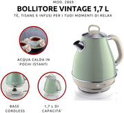 Ariete Vintage Green 1.7L Retro Style Jug Kettle - Electric Cordless Kettle AR6904