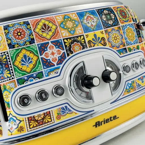 Ariete Positano 1.7L Kettle and 4 Slice Toaster Multi-Coloured Breakfast Set AR8961 / AR1561. Fast Dispatch & Free Next Working Day Delivery. 2 Year Manufacturer ARIETE Guarantee