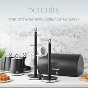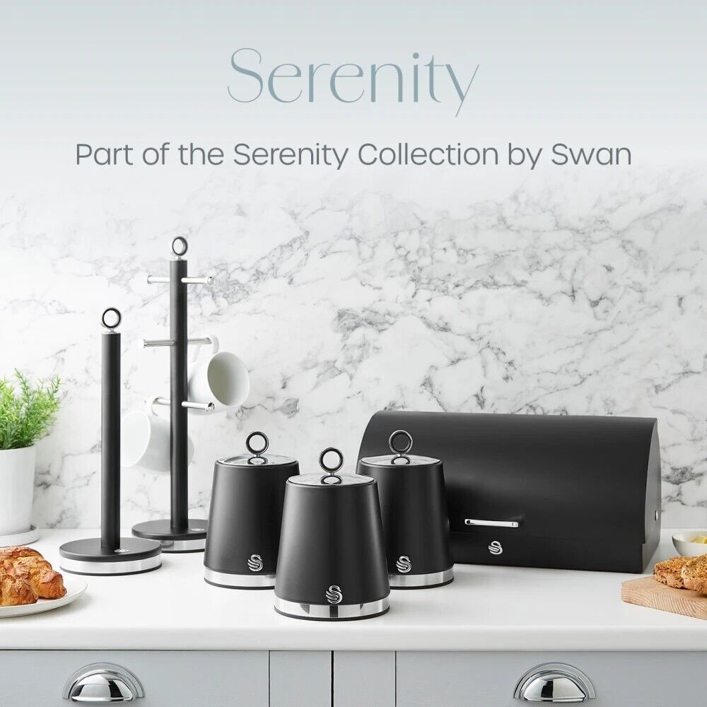 Swan Serenity Black 1.7L 3KW Kettle, 4 Slice Toaster, Bread Bin, Canisters, Mug Tree, Towel Pole and 20L 700W Microwave SM4420BLK. Beautiful Design Complete Matching Swan Kitchen Set of 9 with a Sleek Black Finish