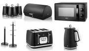 Swan Serenity Black 1.7L 3KW Kettle, 4 Slice Toaster, Bread Bin, Canisters, Mug Tree, Towel Pole and 20L 700W Microwave SM4420BLK. Matching Swan Kitchen Set of 9