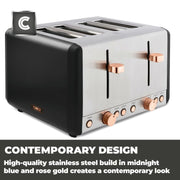 Cavaletto 1800W 4 Slice Toaster in Black & Rose Gold