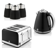 Swan Retro 1.5L 3KW Retro Jug Kettle, 4 Slice Toaster, Tea Coffee & Sugar Canisters Matching Kitchen Set in Black