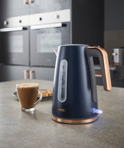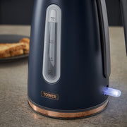 Tower Cavaletto 1.7L Jug Kettle & 4 Slice Toaster Set Midnight Blue & Rose Gold