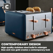 Cavaletto 1800W 4 Slice Toaster in Midnight Blue & Rose Gold