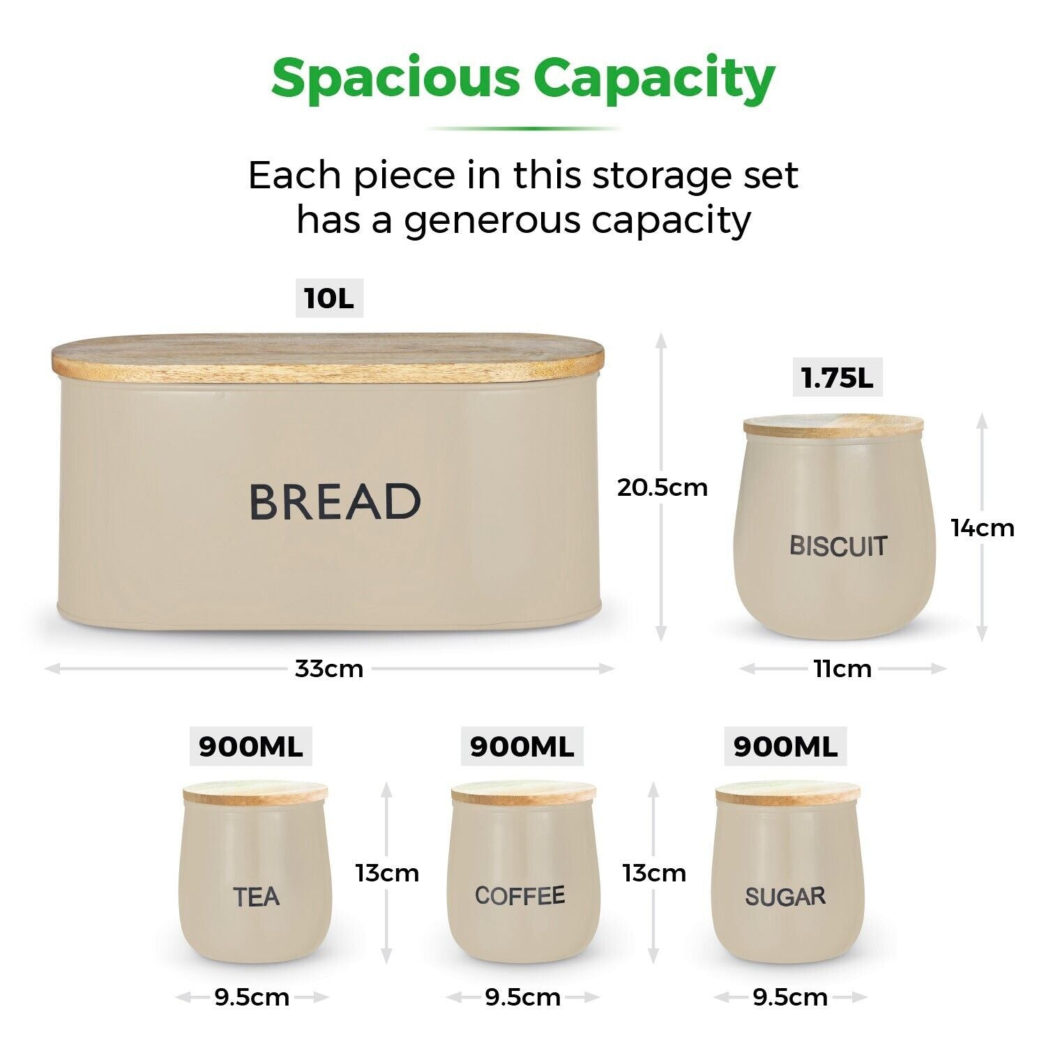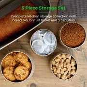 - 5pce storage set compromising of a bread bin/3 canisters/biscuit tin