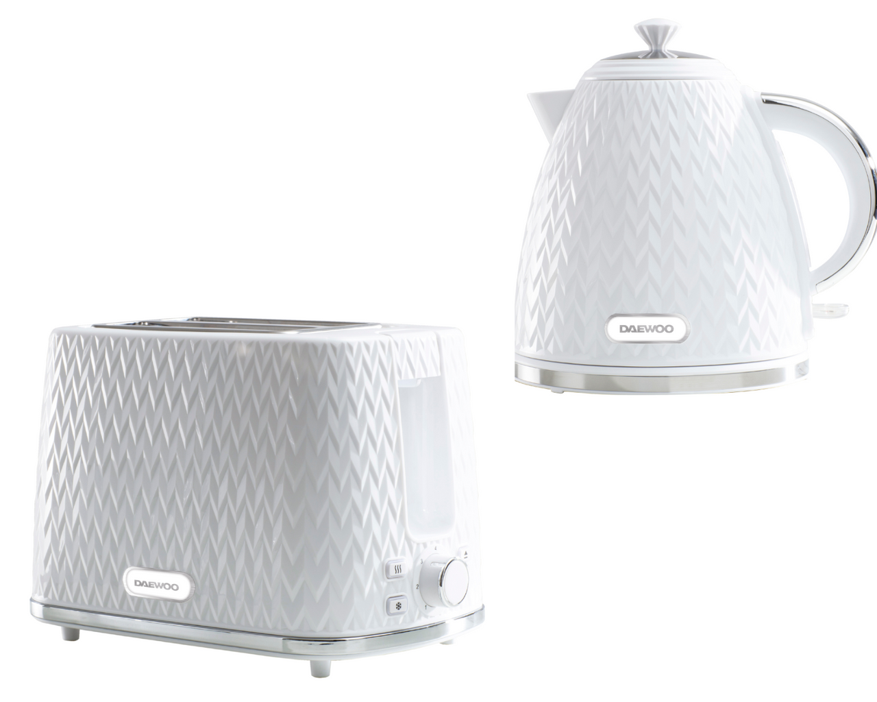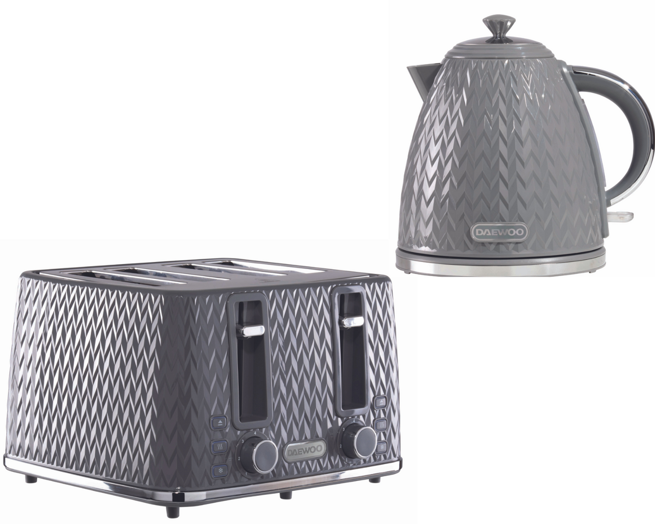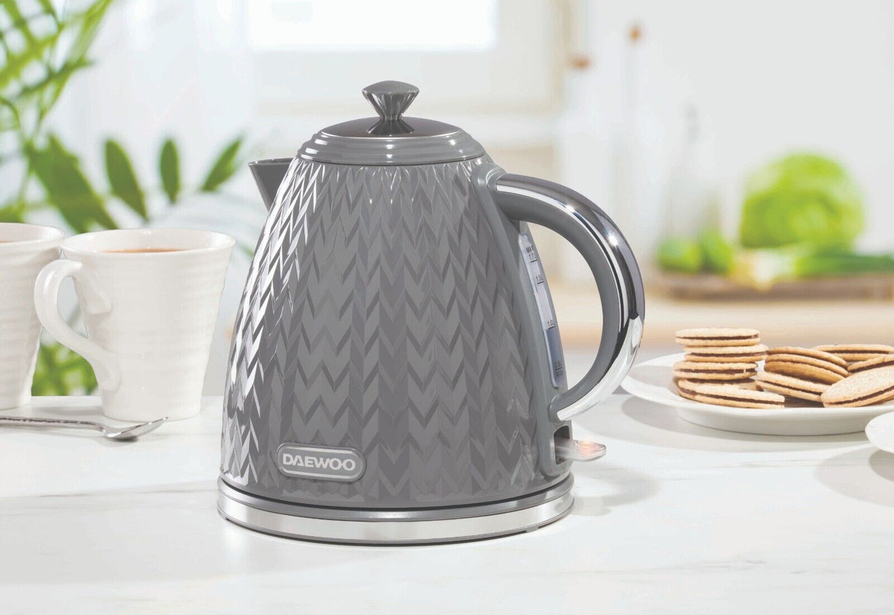 Transform your kitchen into a hub of style and functionality with the Daewoo Argyle Collection of Kettles & Toasters. Whether you're brewing your morning coffee or toasting your favorite artisan bread, do it with flair and finesse with this range of kettles and toasters. Featuring a Textured Design, Gloss Finish and Chrome Accents, these eye-catching Kettles & Toasters are available in Black, Dark Grey and White