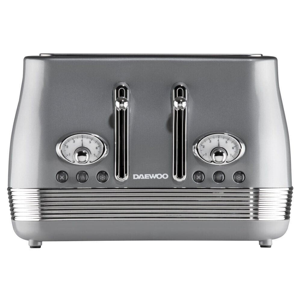 Daewoo Denver Grey 1.5L 3KW Kettle & 4 Slice Toaster Matching Set in Smoked Grey