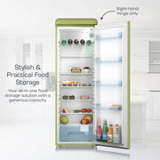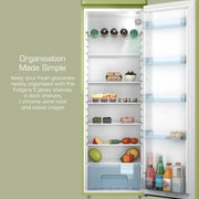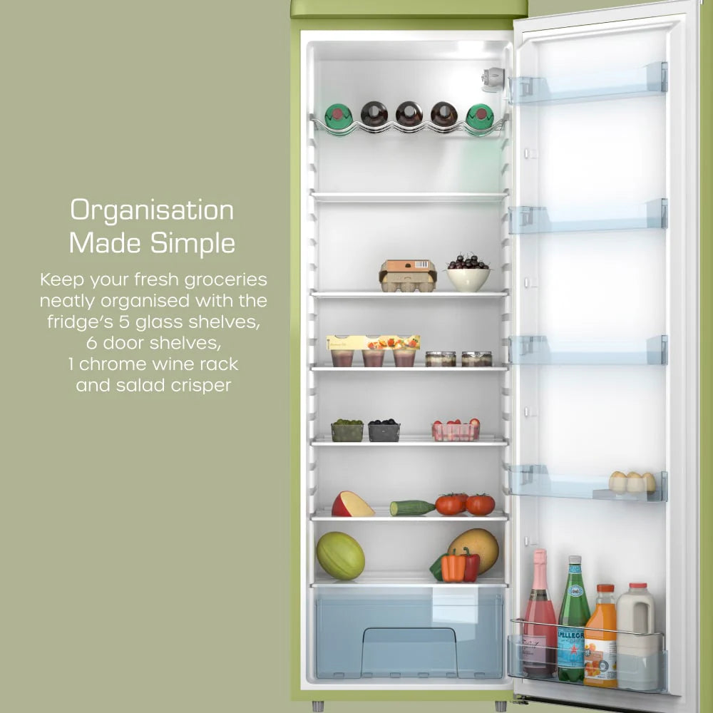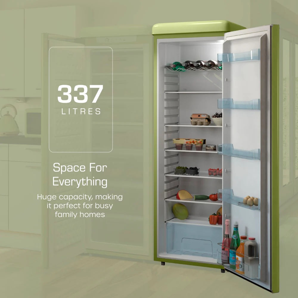 Swan Retro Tall Larder Fridge with 337L Capacity, 5 Glass Fridge Shelves, 1 Chrome Wine Rack, 6 Door Shelves, 1 Salad Crisper, Energy Class E, Green SR11050GNE. 2 Year SWAN Manufacturer Guarantee