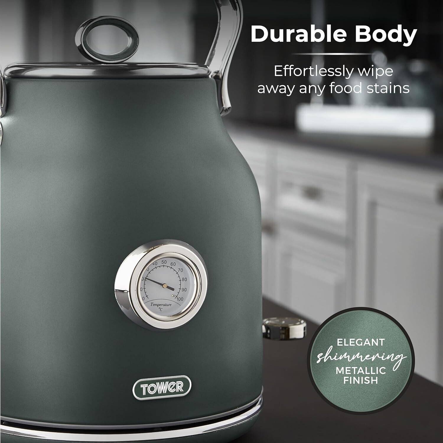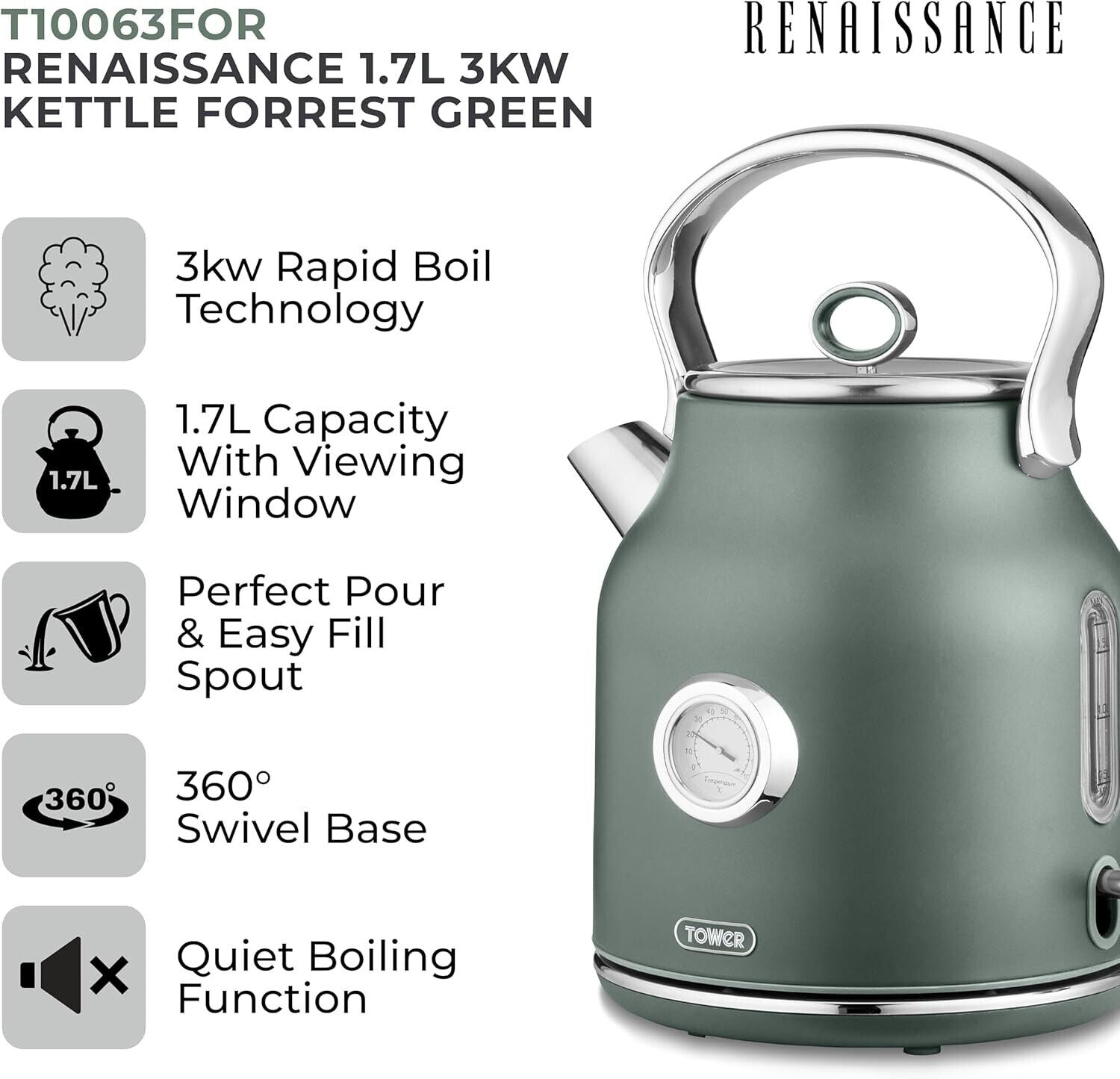 Tower Renaissance Kettle, 1.7L, 3KW Forest Green