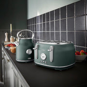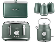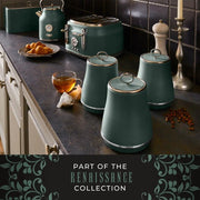 Tower Renaissance 1.7L 3KW Kettle, 4 Slice Toaster, Bread Bin and Canisters Kitchen Set in Forest Green