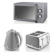 Brand New Swan Retro Kitchen Set in Vintage Grey including 1.5L 3KW Jug Kettle, 4 Slice Toaster & 25L 900W Manual Microwave