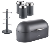 Tower Infinity Slate Grey Bread Bin, 3 Canisters & Mug Tree Kitchen Storage Set