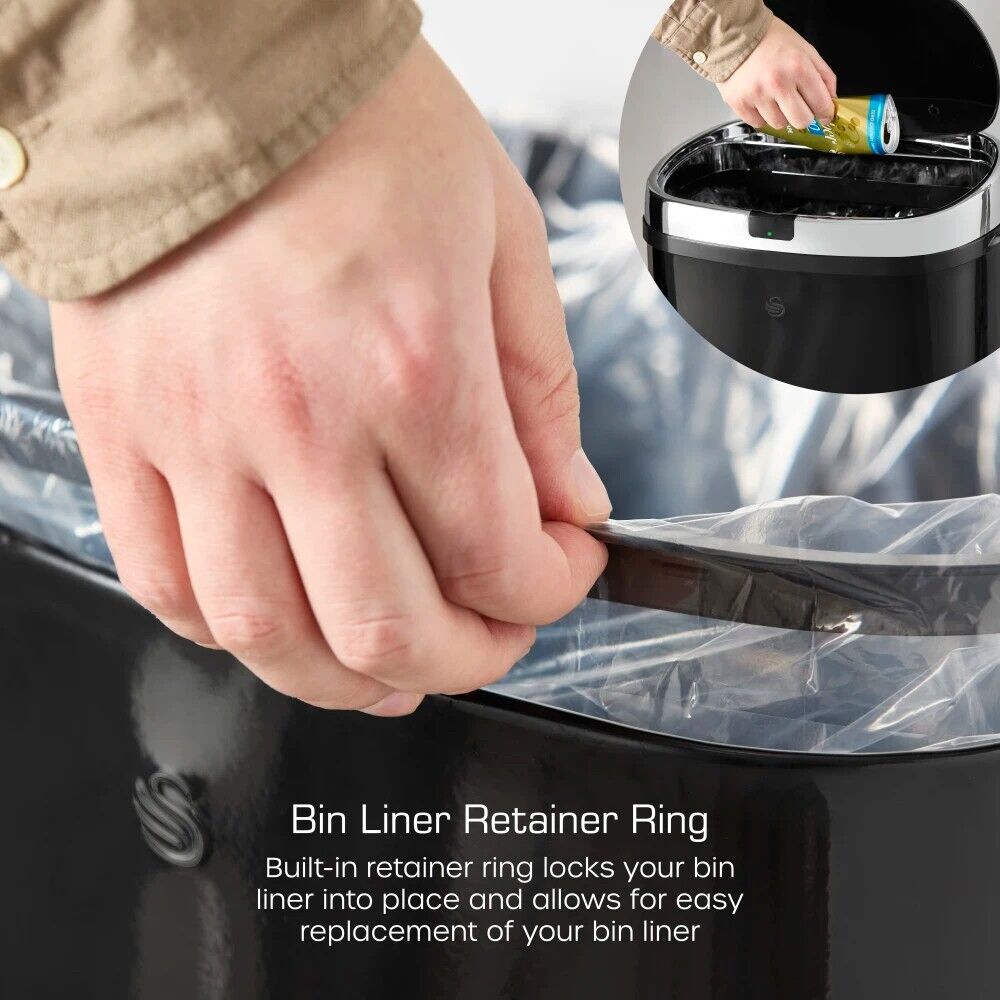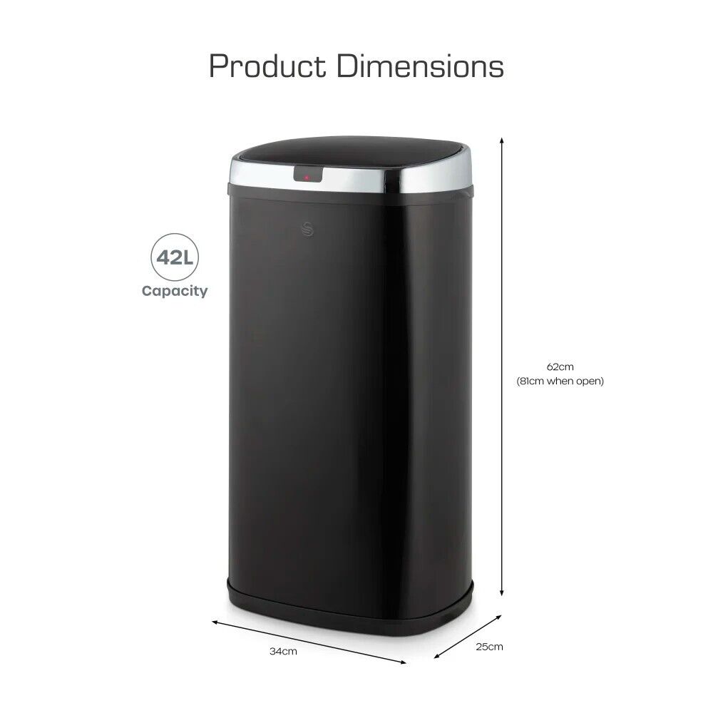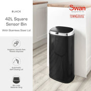 Swan Townhouse 42L Square Sensor Bin Black - Kitchen/Household Bin SWKA4517BLK