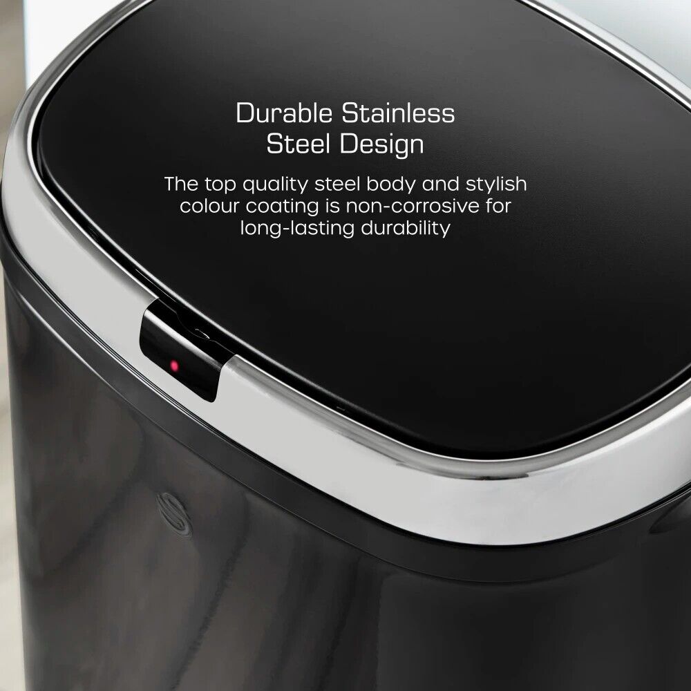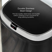 This Swan Townhouse square sensor bin makes waste disposal stylish and simple. Just approach the bin or swipe near the sensor bar and it opens automatically, which is helpful when you have your hands full. The lid closes after 5 seconds of no activity, providing hands-free and hygienic waste disposal. This motion sensor bin features a big 42L capacity that easily takes large loads of waste, requiring less frequent emptying, It's made from top quality polished stainless steel, complete with a stylish non-corrosive colour coating for long-lasting durability. The specially designed built-in retainer ring locks your bin liner into place around the rim, so can withstand heavier loads without the risk of the bag falling down into the bin. Requires 4 x AA batteries (not included).