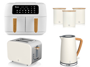 Brand New Swan Nordic White 1.7L Jug Kettle, 4 Slice Toaster, 8L Dual Basket 13-in-1 Air Fryer & Tea, Coffee, Sugar Canisters. Scandinavian Inspired Minimalist Design Matching Kitchen Set of 6 in White with Wood Effect Accents