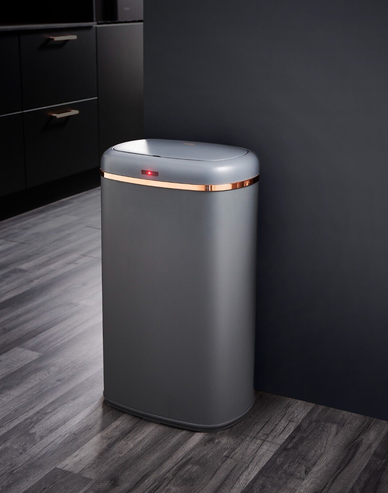 Tower Cavaletto Grey Pyramid Kettle Toaster Breadbin Canisters & 58L Sensor Bin