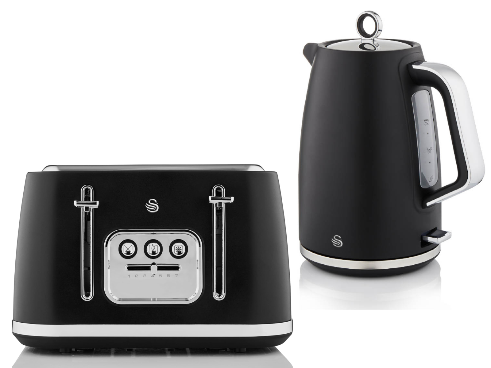 Swan Serenity 1.7L 3KW Kettle & 4 Slice Toaster Set in Matt Black Finish with Chrome Trim