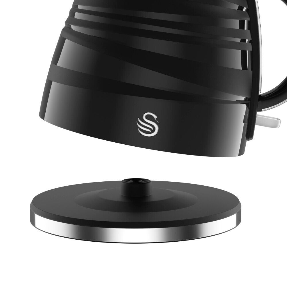 Swan's Symphony range 1.7 Litre Jug Kettle is a smart addition to any kitchen. Contemporary in style, Swan's Symphony kettle features a textured surface, decorated with a distinctive, ribbon-style design in a high gloss and matt finish. Combining elegance with efficiency, it has a generous 1.7 litre capacity and can make up to six to eight cups with just one boil. An external water gauge lets you easily view how much water is in your kettle and the 360 degree rotational base means that your kettle it's always within easy reach whether you are right or left handed. The removable, washable limescale filter helps ensure clean, fresh water every time, while keeping your kettle clean and free from limescale and other impurities. A concealed heating element ensures optimum efficiency along with automatic cut-out and boil dry protection. Swan's Symphony 1.7 Litre Jug Kettle also comes with a 2 year warranty.