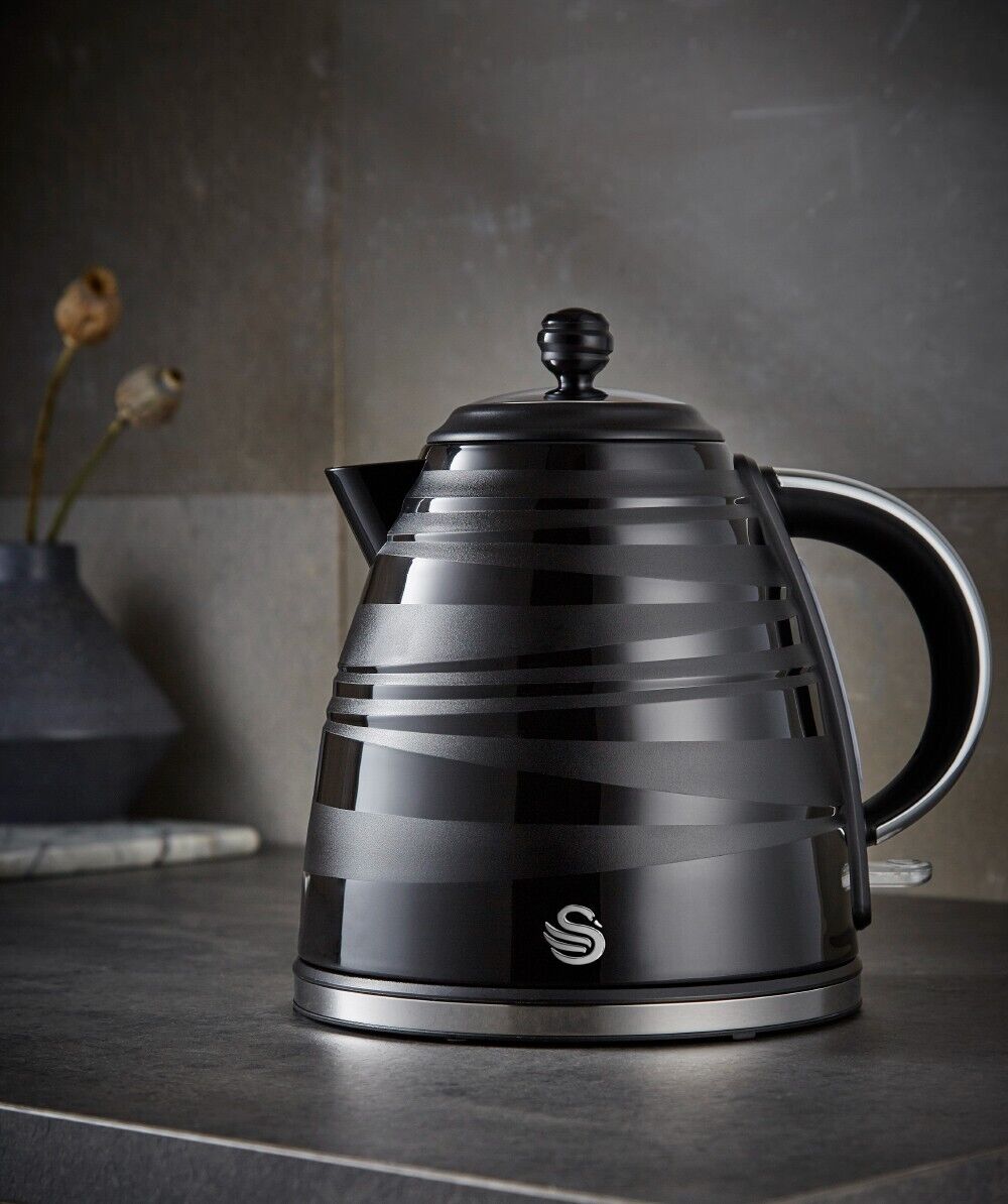 Brand New Swan Symphony Black 3KW 1.7L Kettle & 4 Slice Toaster. Contemporary Matching Kitchen Electrical Set.Full  2 Year Swan Manufacturer Guarantee