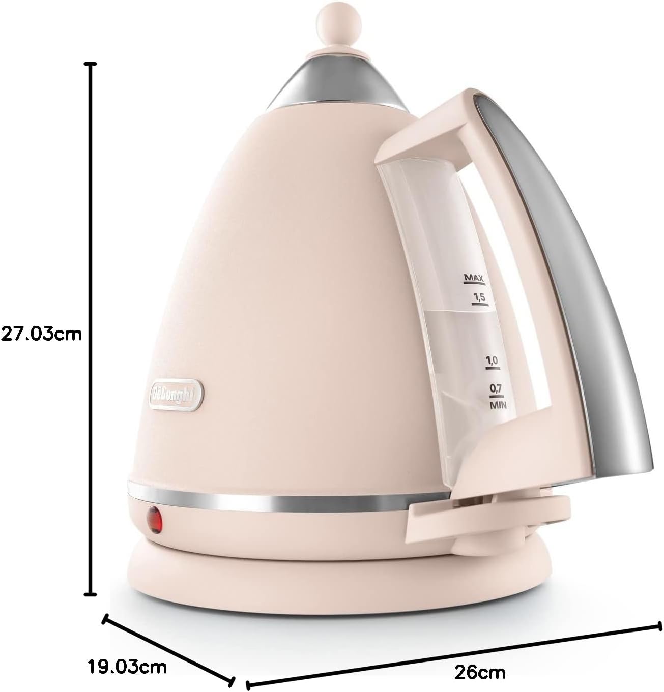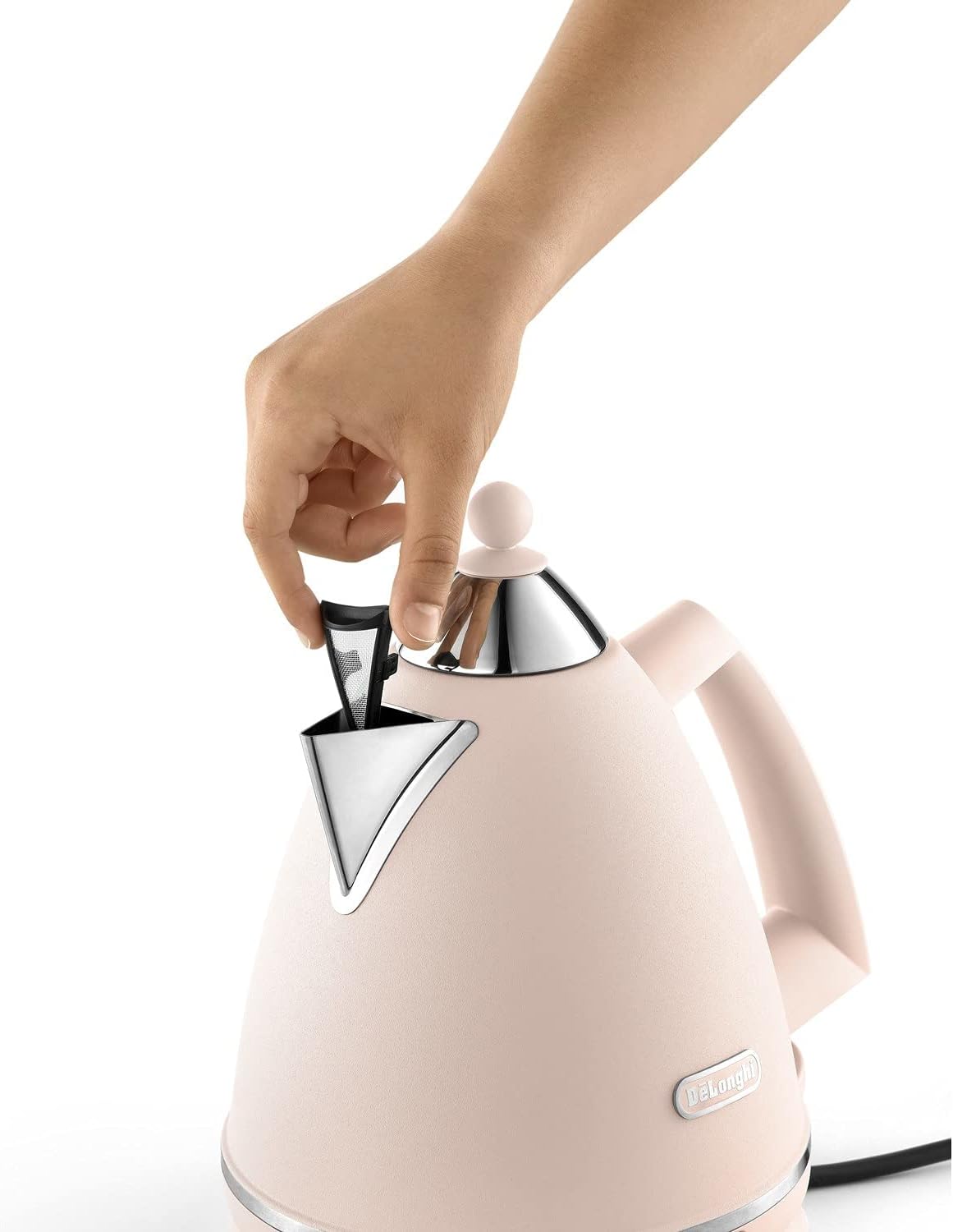 Add a soft and stylish touch to your kitchen with the De’Longhi Argento Flora Pink Kettle. Its delicate pink matt finish with chrome trims combines natural-inspired Italian design with modern convenience for effortless daily use.
