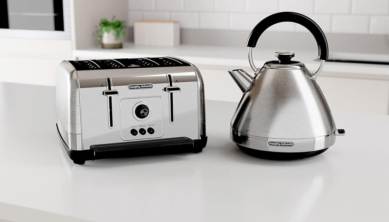 The Morphy Richards Venture Collection of Kettles & Toasters offer a perfect blend of style and functionality for your kitchen. With their sleek lines, contemporary features and top-notch performance, these Kettle & Toaster appliances are designed to make your mornings better and your kitchen more appealing. Upgrade your kitchen today and experience the Morphy Richards difference