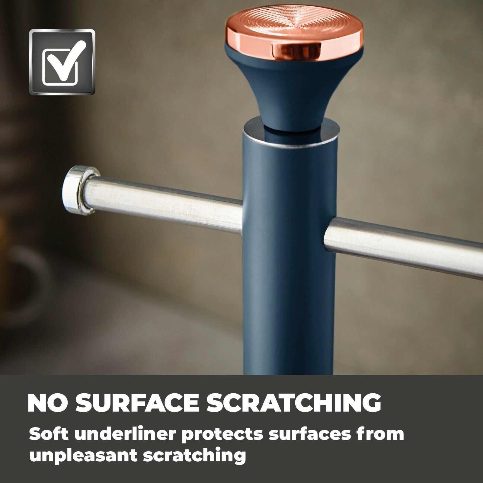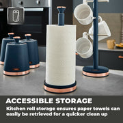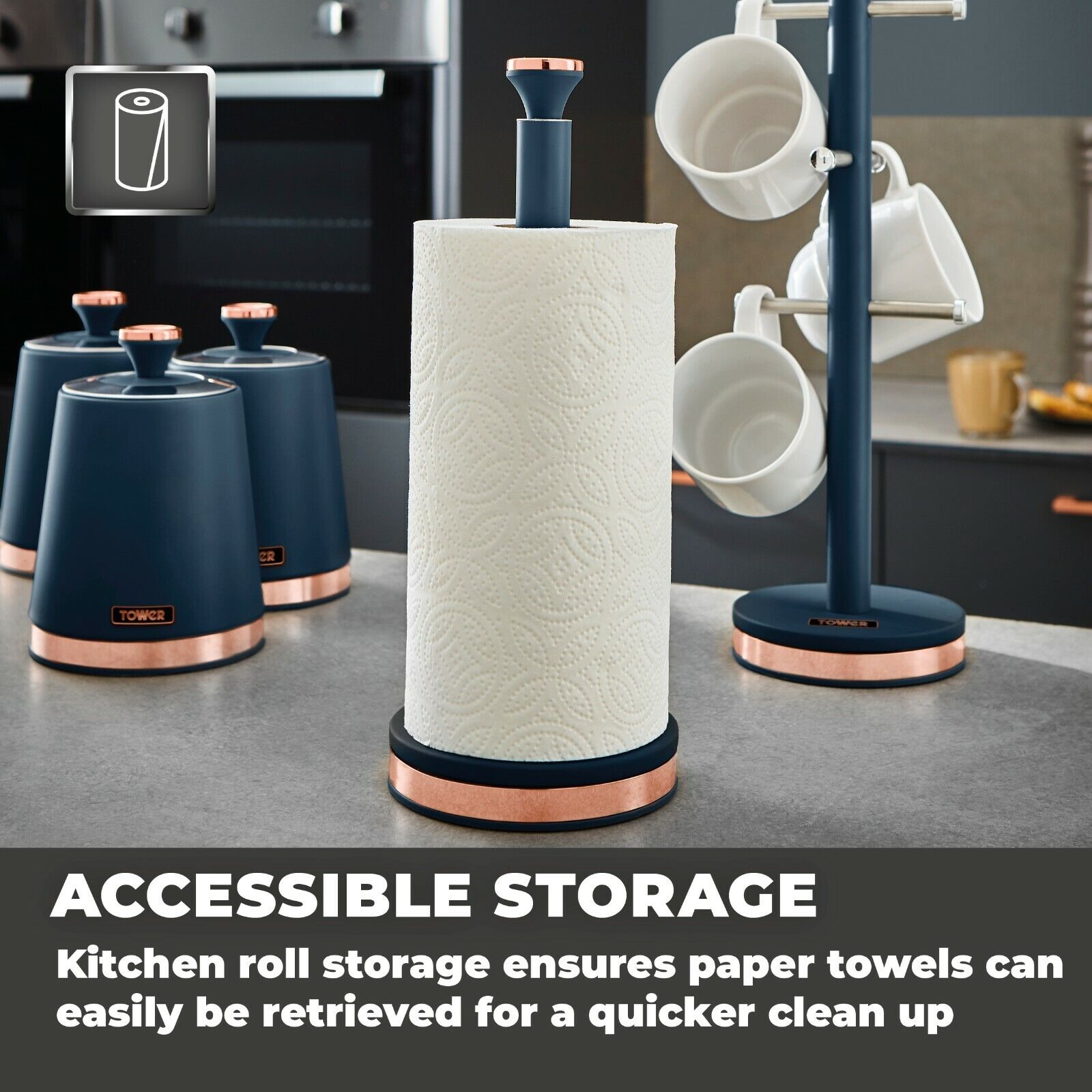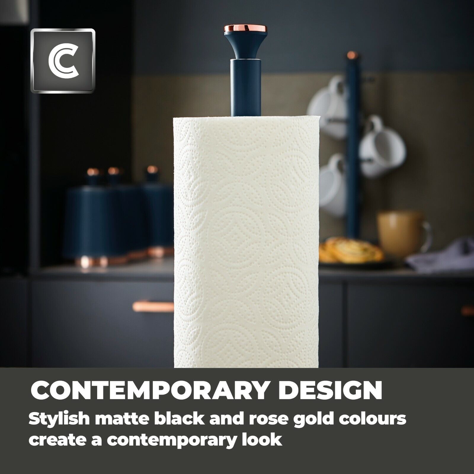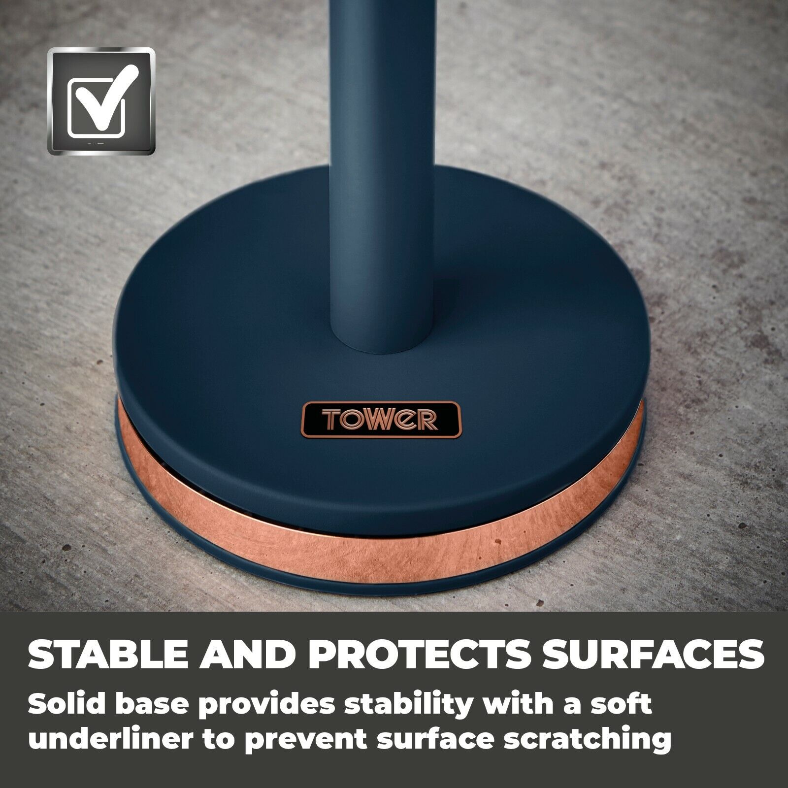 Wrapped in a staple design feature for today's modern home, this Tower Cavaletto towel pole is a stylish place to store your kitchen roll. Featuring our signature matte midnight blue Cavaletto design, complimented by notes of rose gold, the structure provides a durable accessory for storing standard size kitchen roll. The pole securely holds your paper towels in place for easy retrieval when performing clean ups. The body is easy to maintain, requiring just a simple wipe to clean so the pole continues looking sleek. A solid base adds extra stability on your kitchen countertop