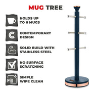 TOWER Cavaletto Mug Tree & Towel Pole Holder Kitchen Set Midnight Blue & Rose Gold