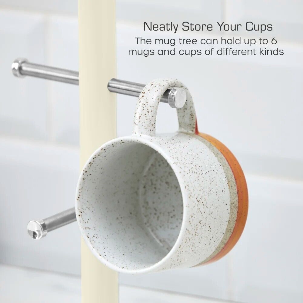Swan Townhouse Cream Mug Tree & Towel Pole. Contemporary, Modern Kitchen Storage