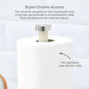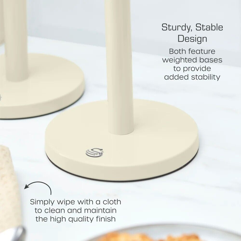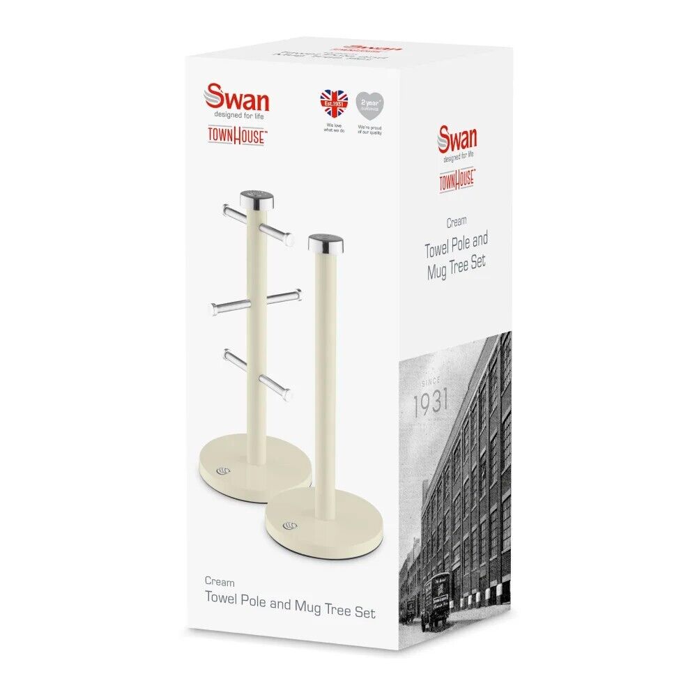 This Swan Townhouse SWKA18531CN cream towel pole and mug tree set is the perfect addition to your kitchen countertop. Forming part of the Swan Townhouse breakfast and storage collection, this set features stylish chrome accents to compliment any kitchen decor. The mug tree can hold up to 6 cups or mugs of all kinds, while the towel pole fits all standard sized kitchen rolls, making all your essentials easily accessible from your worktop. The bases are weighted to provide additional stability and prevent tipping. The Swan Townhouse collection combines striking modern design with beautiful detailing in sleek finishes with coordinated colours.