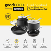 Good Food by TOWER 5 Piece Cookware Set. Hard Anodized Pan Set GF900258 - 25 yr Guarantee