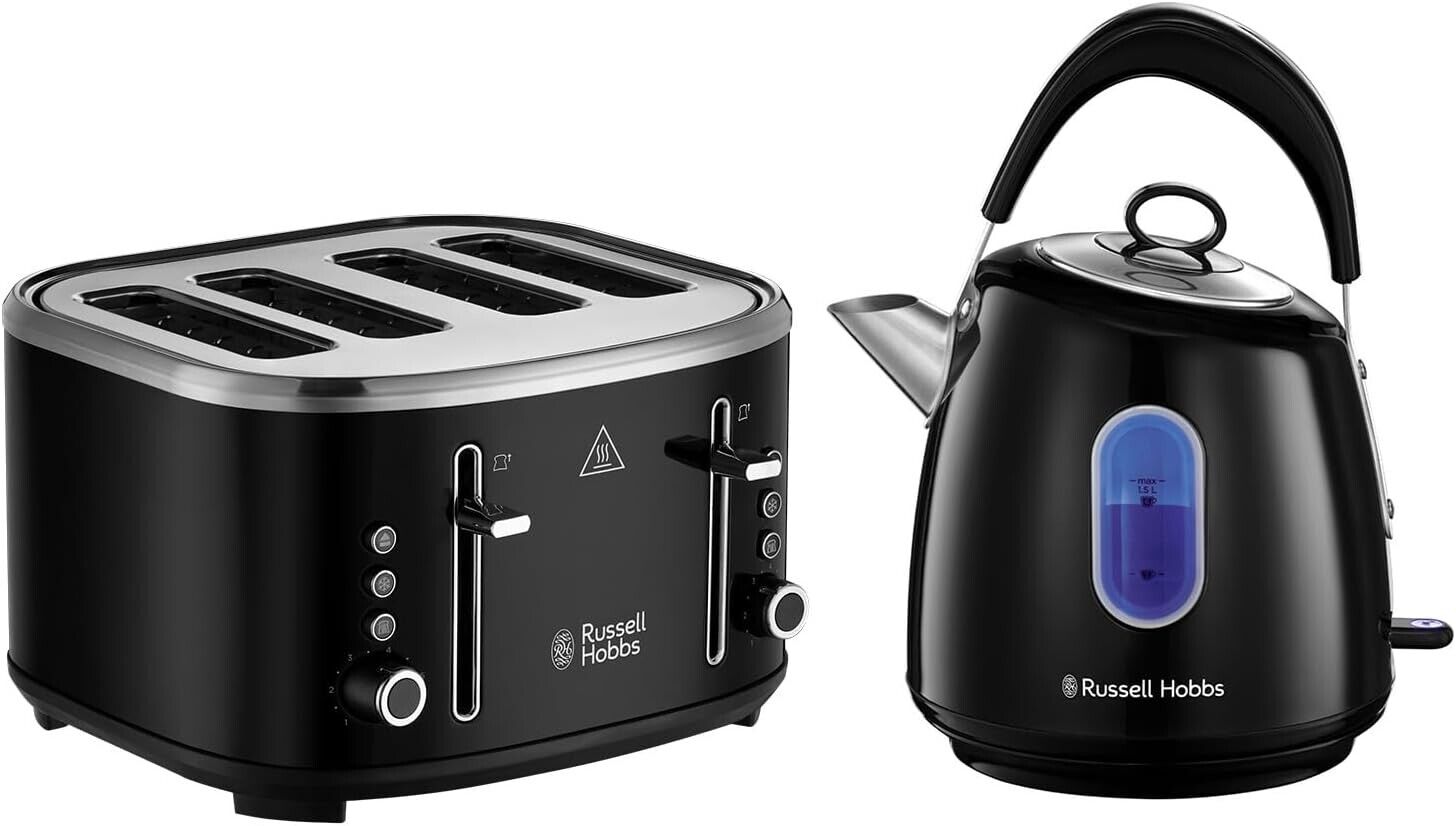 Russell Hobbs Stylevia Black 1.5L Kettle & 4 Slice Toaster Sleek Matching Set