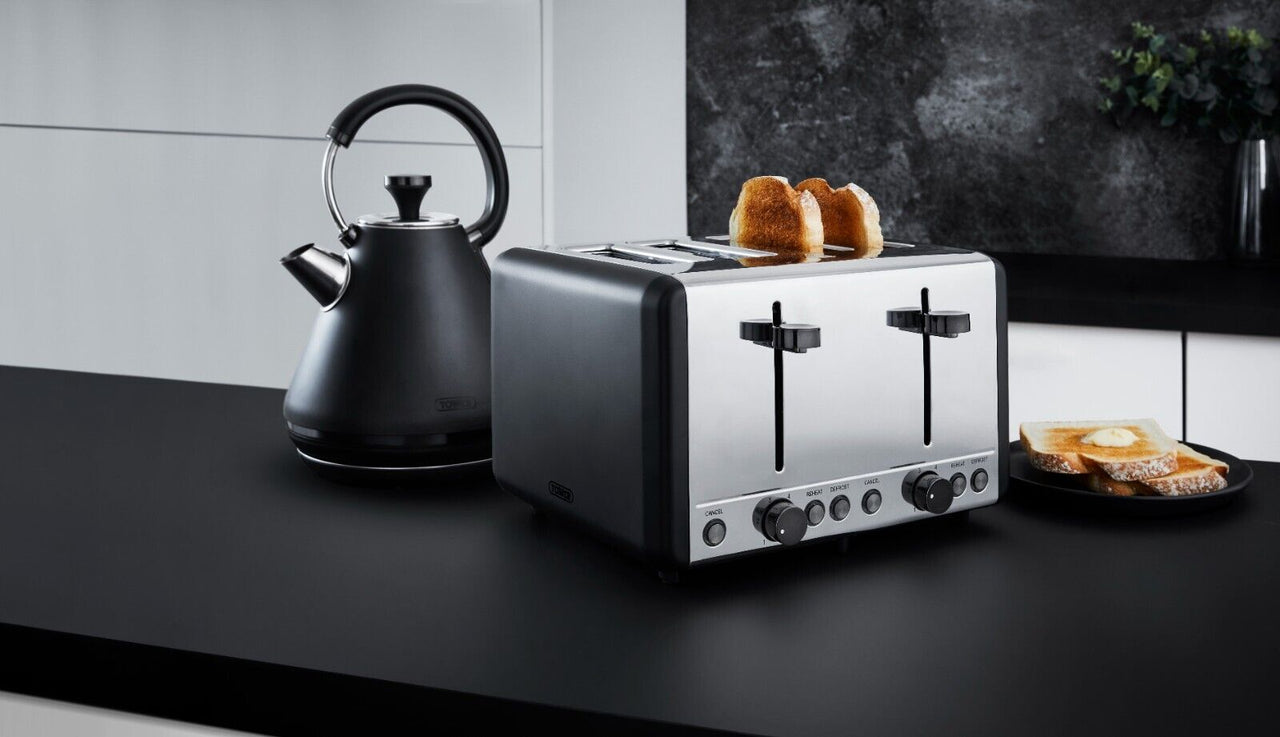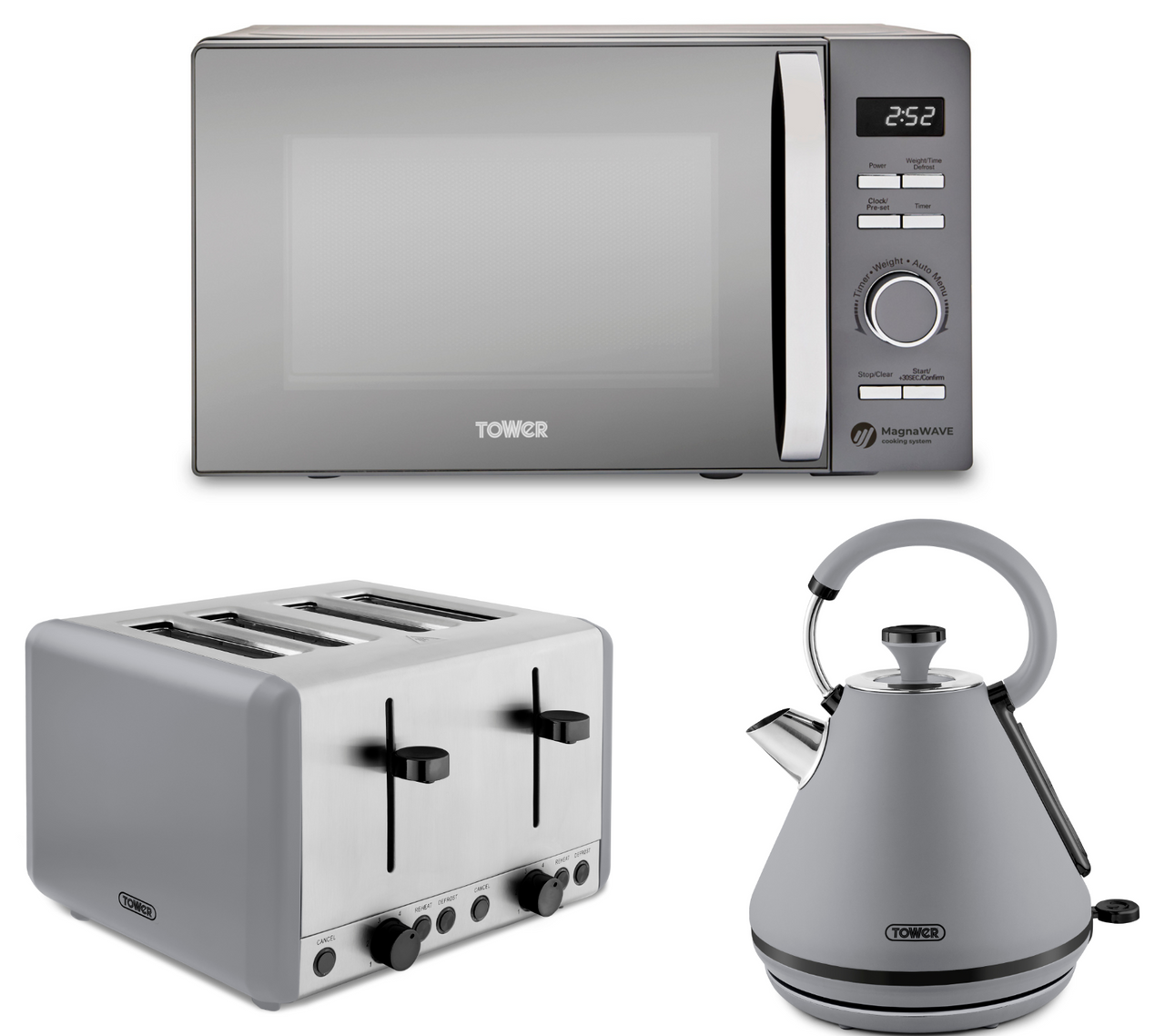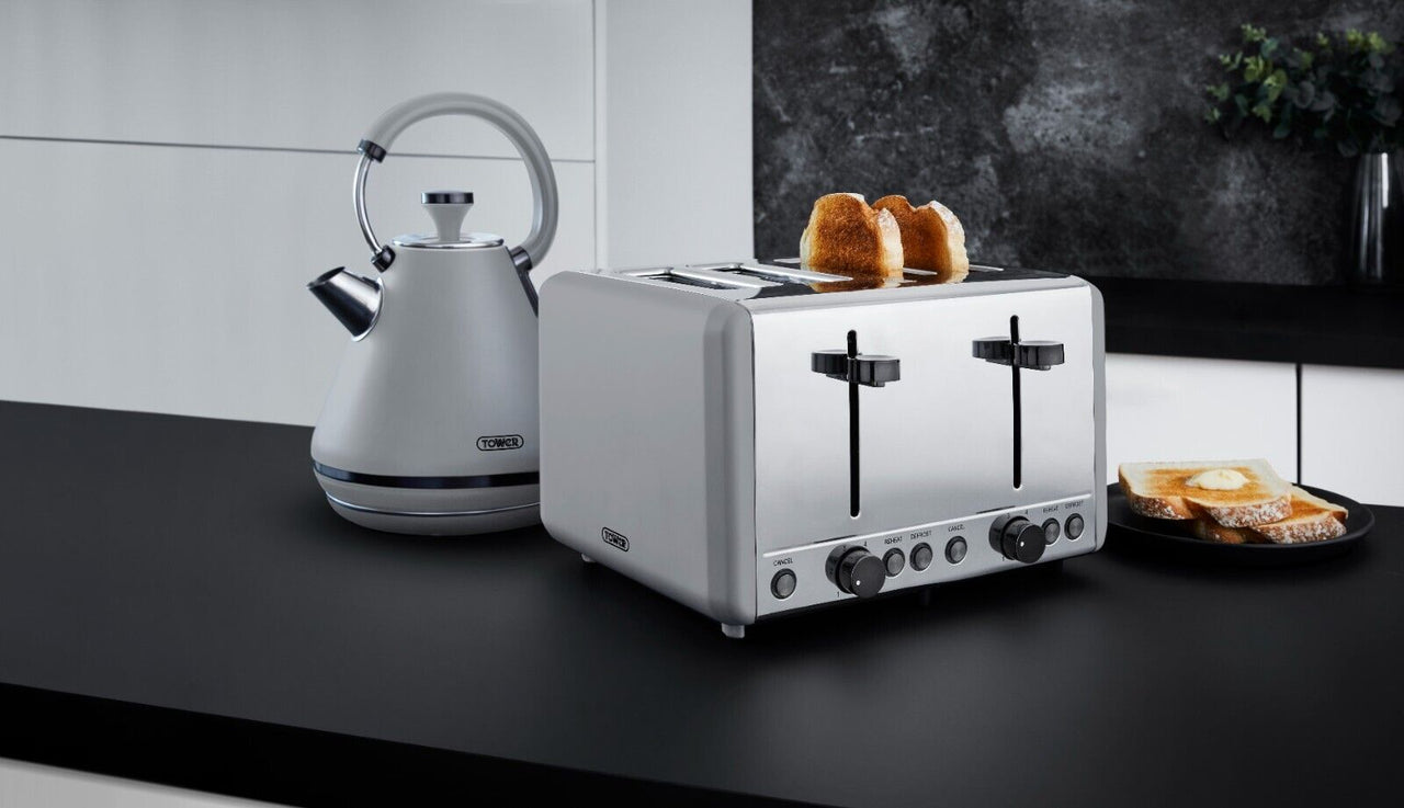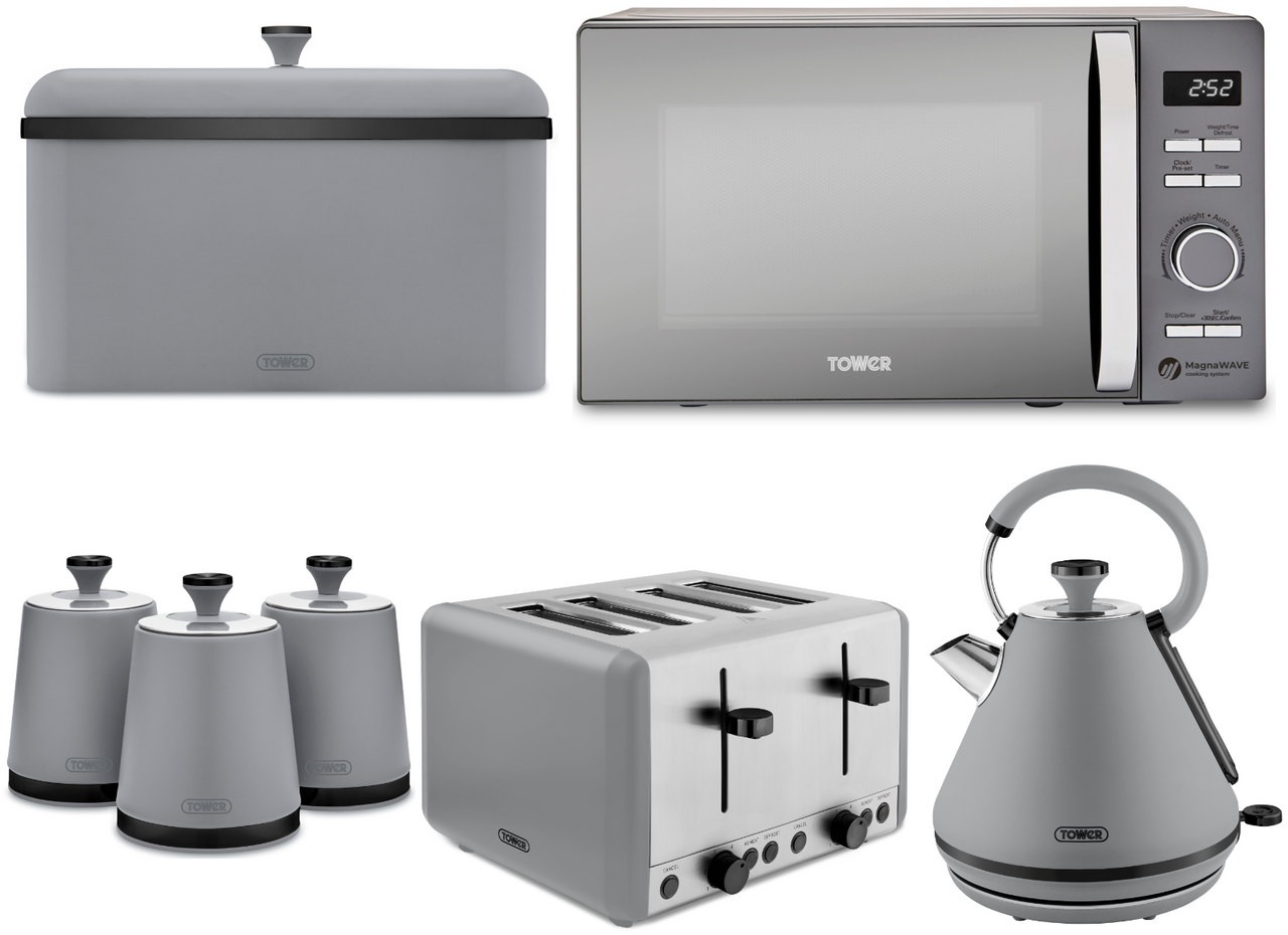 Introducing the all-new Tower Sera Range of Kettles, Toasters, Bread bins and Tea, Coffee, Sugar Canisters. Designed to complement modern lifestyles, these appliances combine sleek aesthetics with cutting-edge functionality. Available in matte Grey, Black, and Blue colorways with a contemporary smoked black trim. Shop the New Tower Sera Kettle & Toaster Collection at The Hale Retail Company