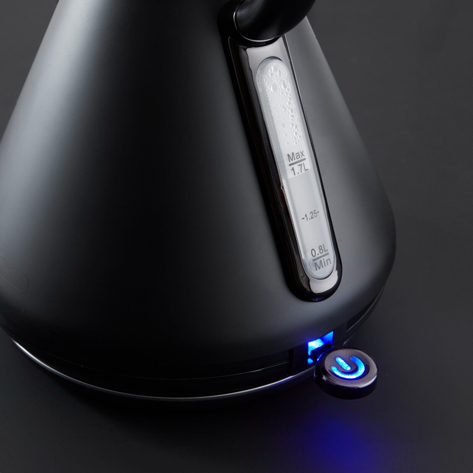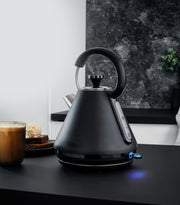 Add contemporary style to your kitchen with this elegant Sera Pyramid Kettle from Tower. It features a matte black finish with a smoked black trim, making it an eye-catching addition to any countertop. Full of modern functionality, it's powered by rapid boil technology to reduce your wait for a delicious hot drink, boiling 1 cup in less than 60 seconds. A large 1.7L capacity lets you make up to 7 drinks from a single fill, ideal for families and busy households alike. With a detachable filter, you can easily remove and rinse away limescale to keep your coffee and tea tasting its best. The perfect pour spout protects against boiling hot water spillages, while the 360-degree swivel base and fully removable lid make it simple to lift and refill the kettle no matter whether you're left or right-handed