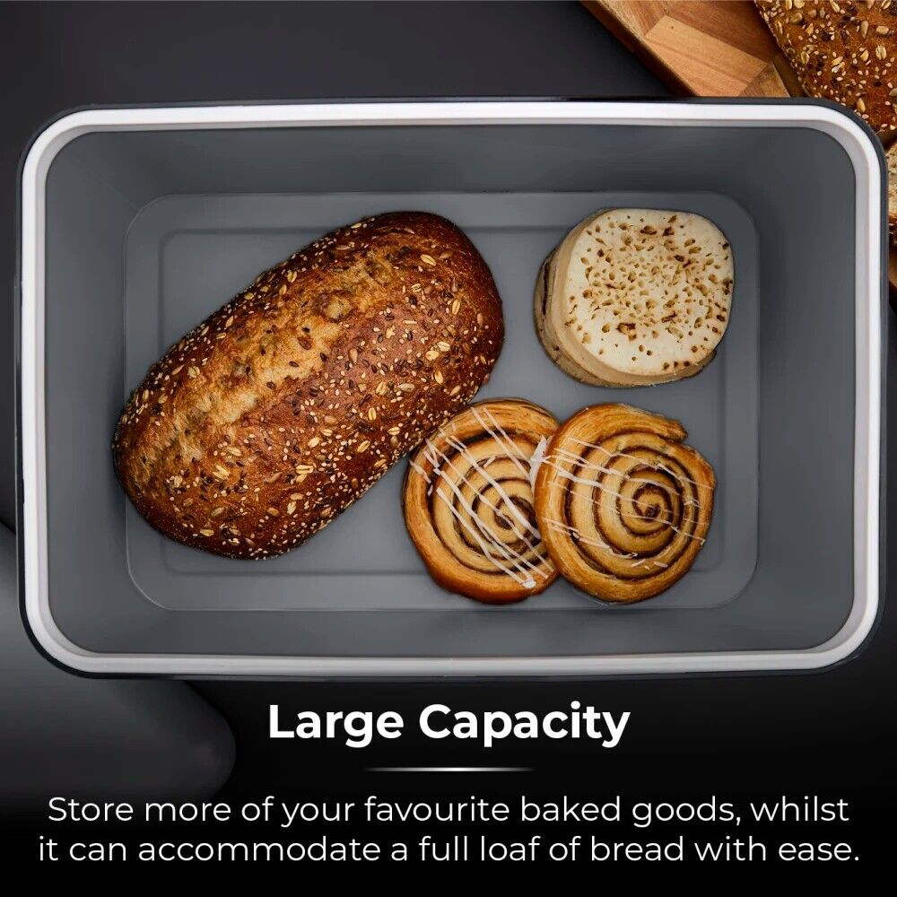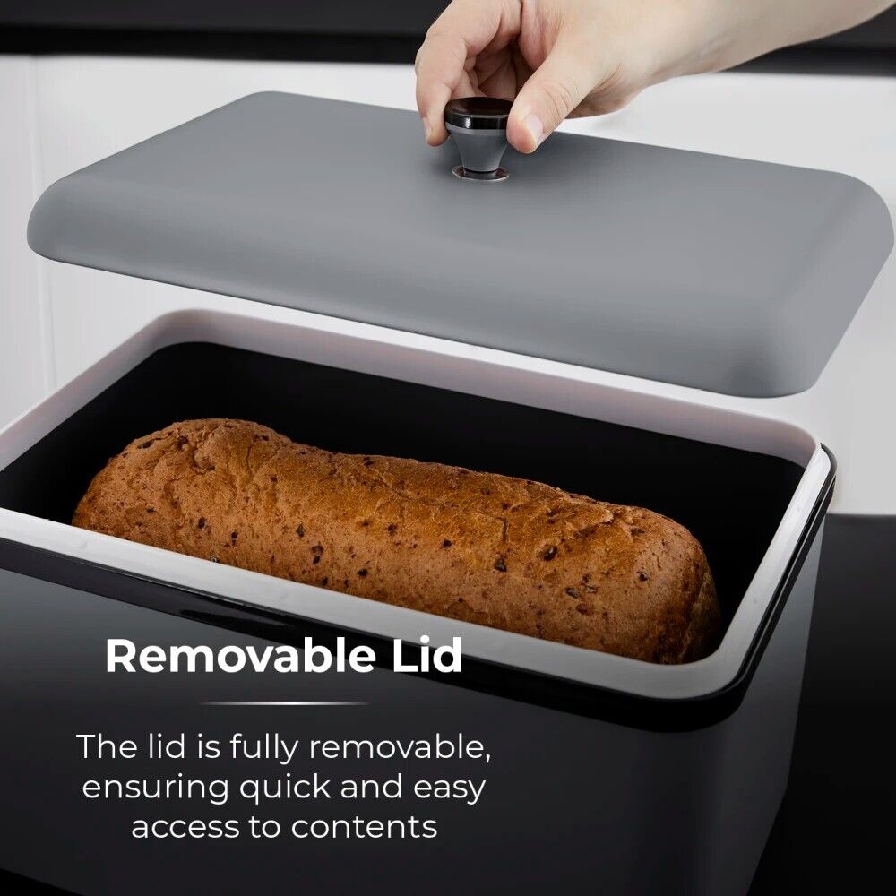 Tower Sera Breadbin in Grey With Black Smoked Trim - Contemporary Kitchen Storage