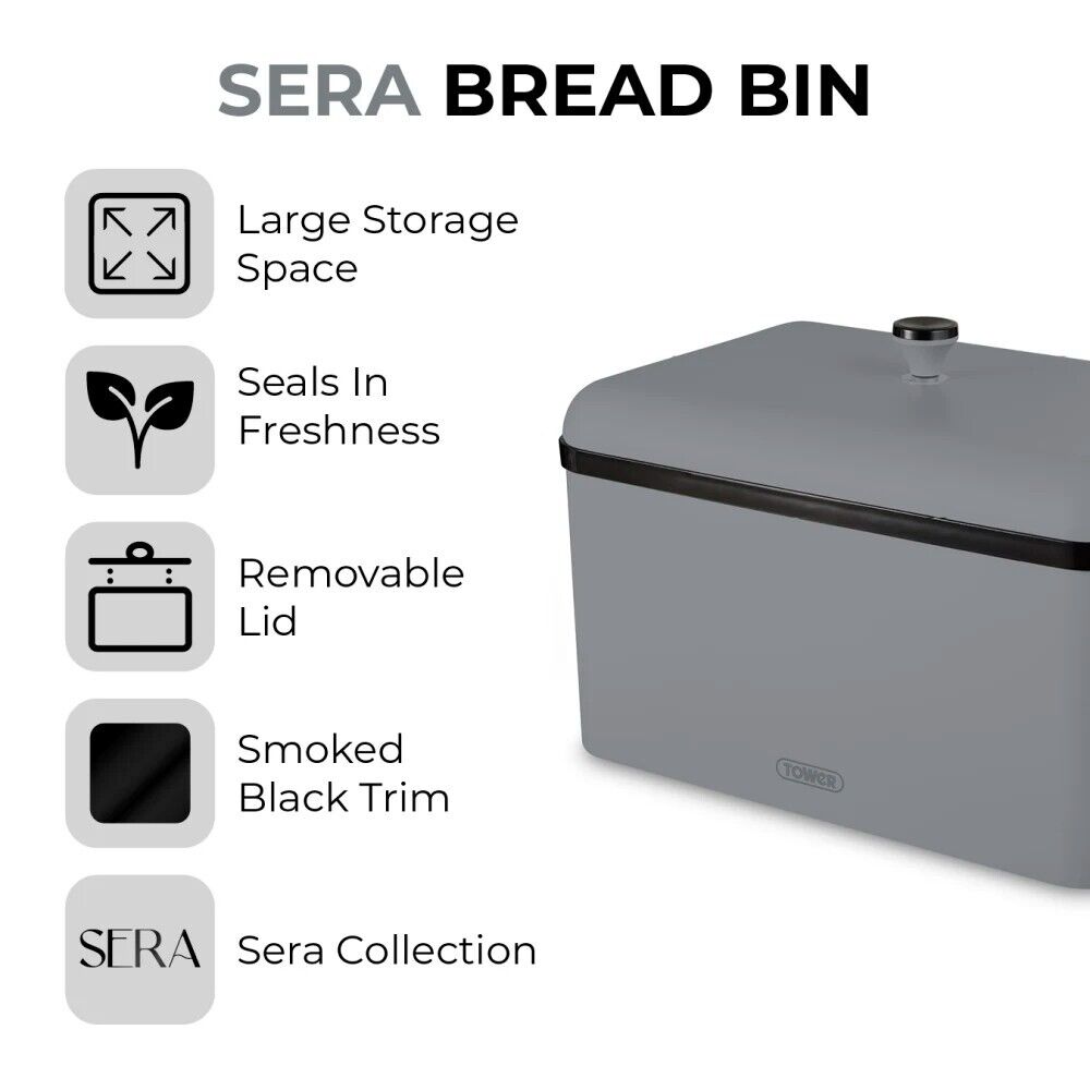 Tower Sera Grey Breadbin. Contemporary Kitchen Storage in Grey with Black Smoked Trim