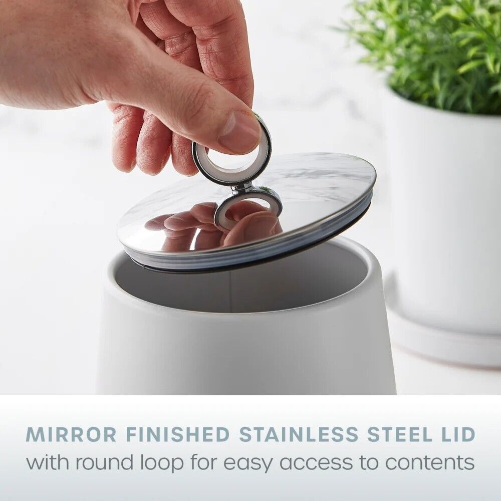 Swan Serenity Bread Bin & Tea, Coffee, Sugar Canisters in White with Polished Stainless Steel Accents. Beautiful Design Matching Swan Kitchen Storage Set with a Sleek White Finish