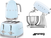 SMEG Pastel Blue 1.7L 3KW Kettle, 4 Slice Toaster & Stand Mixer. Retro 50s Design Matching Kitchen Bundle Set