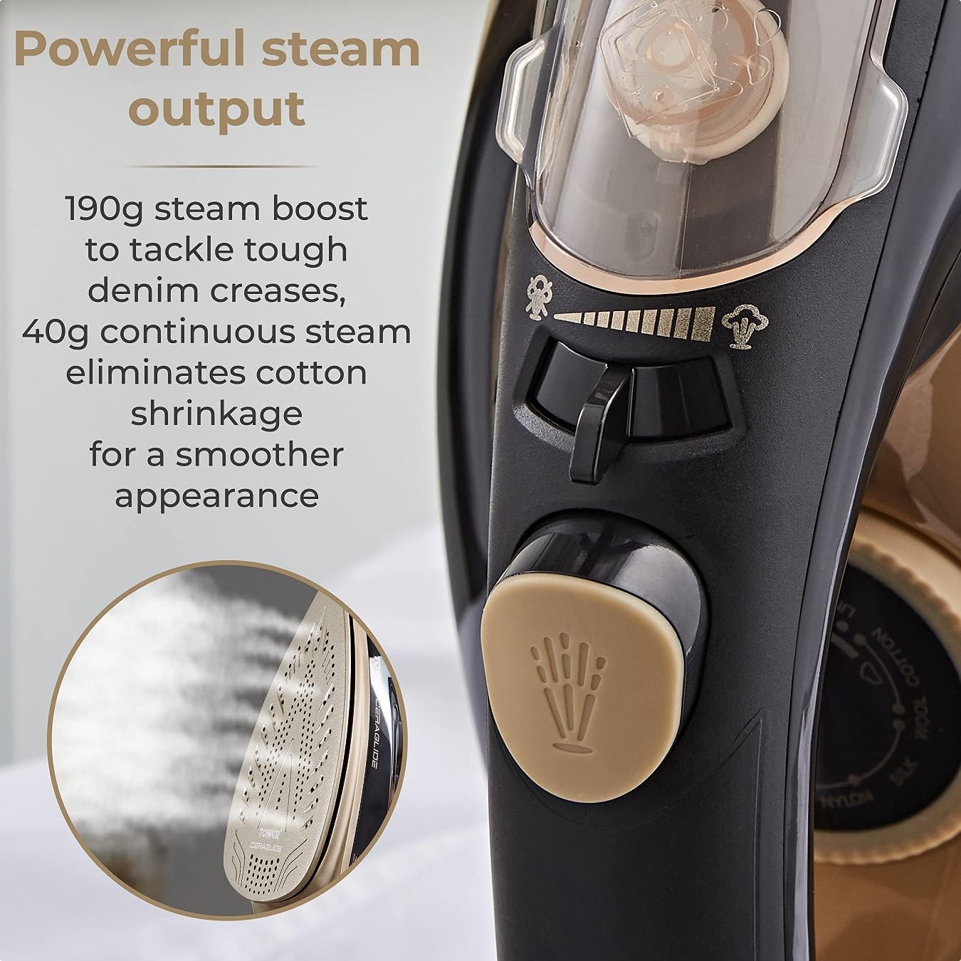 Tower Ceraglide Steam Iron 3100W Ceramic Soleplate Black & Gold T22021GLD