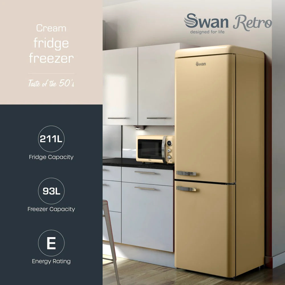 Upgrade your kitchen with the iconic style and dependable performance of Swan Retro Refrigeration. From compact under-counter fridges to spacious tall fridge freezers, the Swan Retro collection delivers bold design, vibrant colours, and essential features to suit any home. Choose from a variety of retro-inspired shades including classic cream, pastel blue, sleek black, and striking red – all crafted to make a statement in your kitchen.