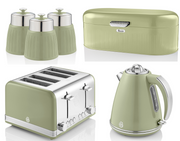 Brand New Swan Kitchen Retro Set of 6 in Green including 1.5L 3KW Jug Kettle, 4 Slice Toaster, Bread Bin, & Tea, Coffee, Sugar Canisters Vintage Kitchen Set