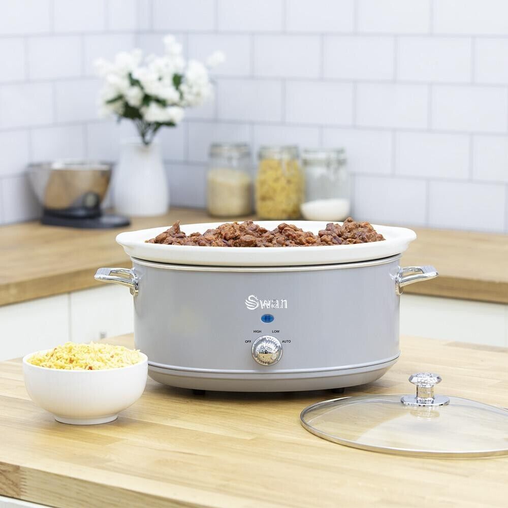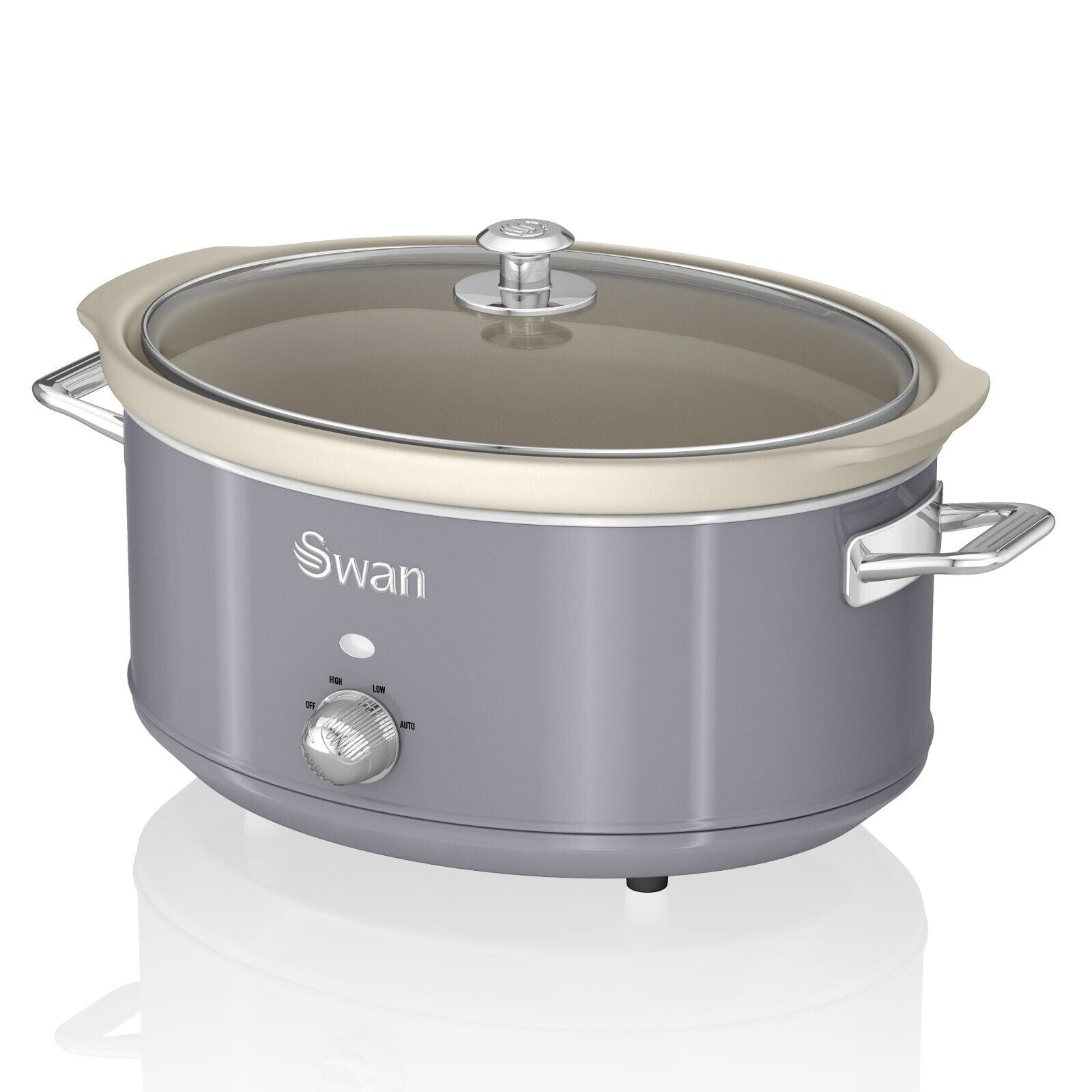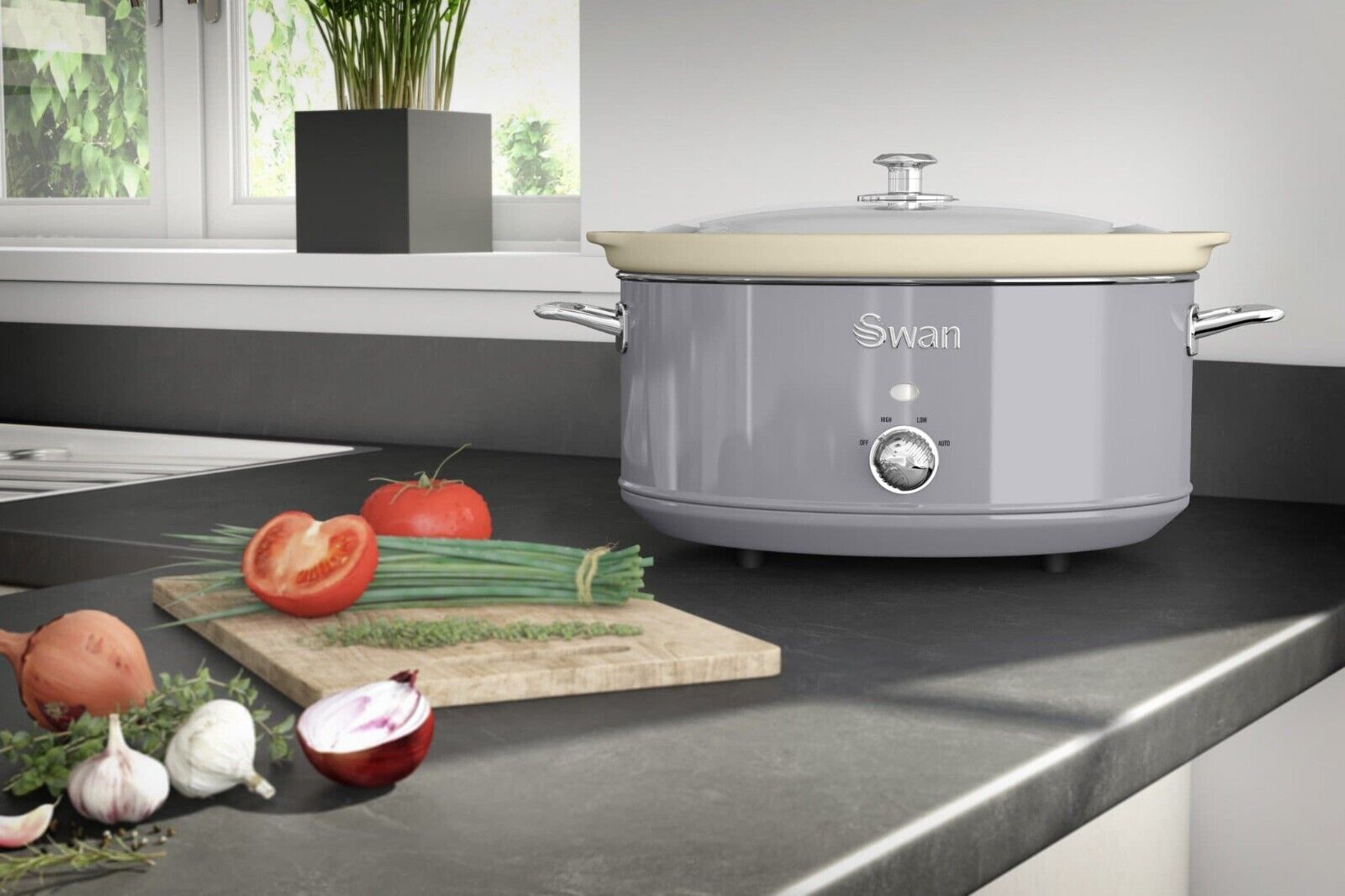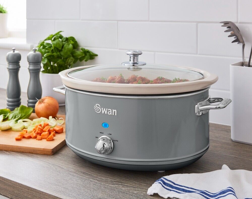 Swan Retro Grey 6.5L Slow Cooker 3 Temp Settings, Keep Warm Function SF17031GRN