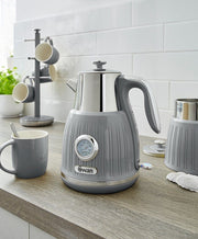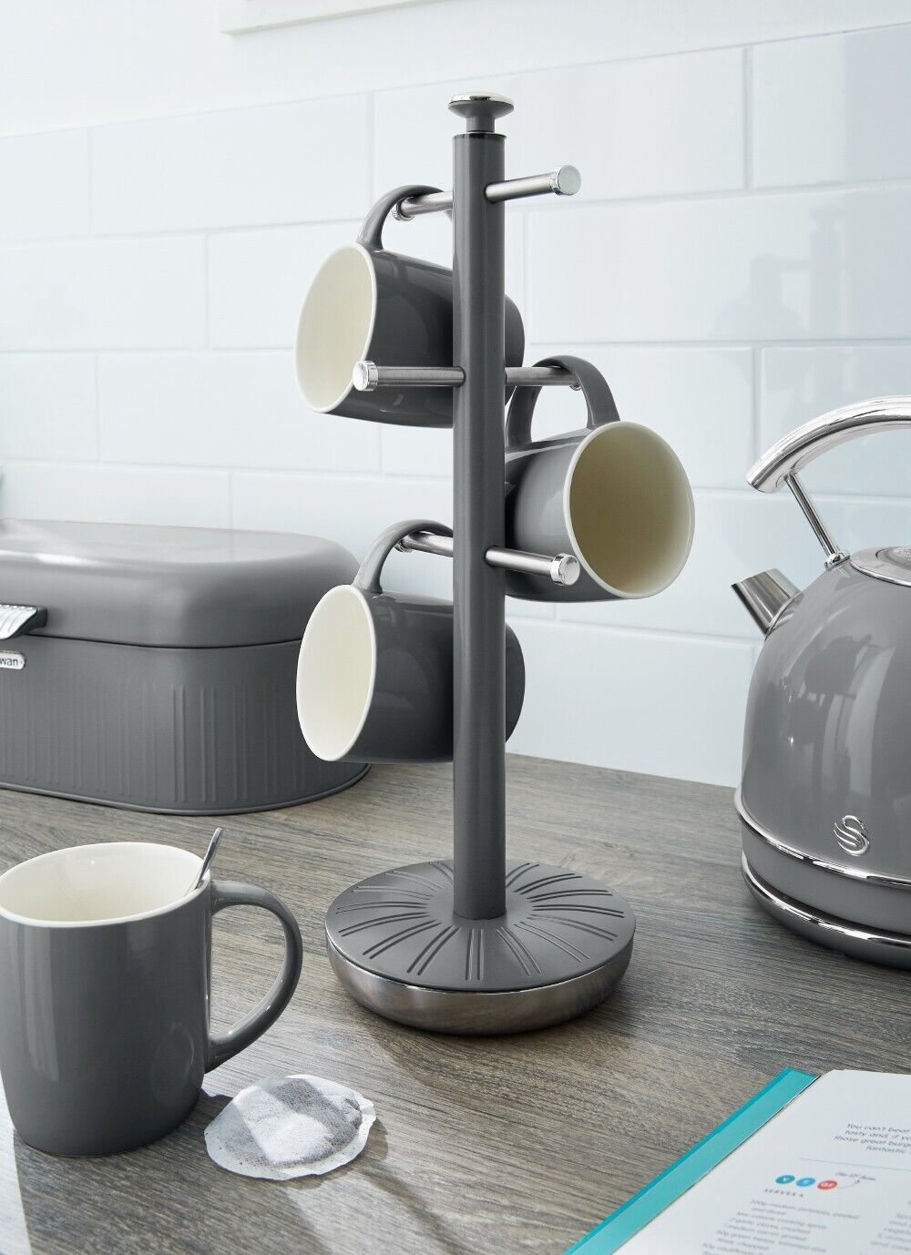 SWAN Retro Grey Dial Kettle Toaster Bread Bin Canisters Mug Tree Towel Pole Set