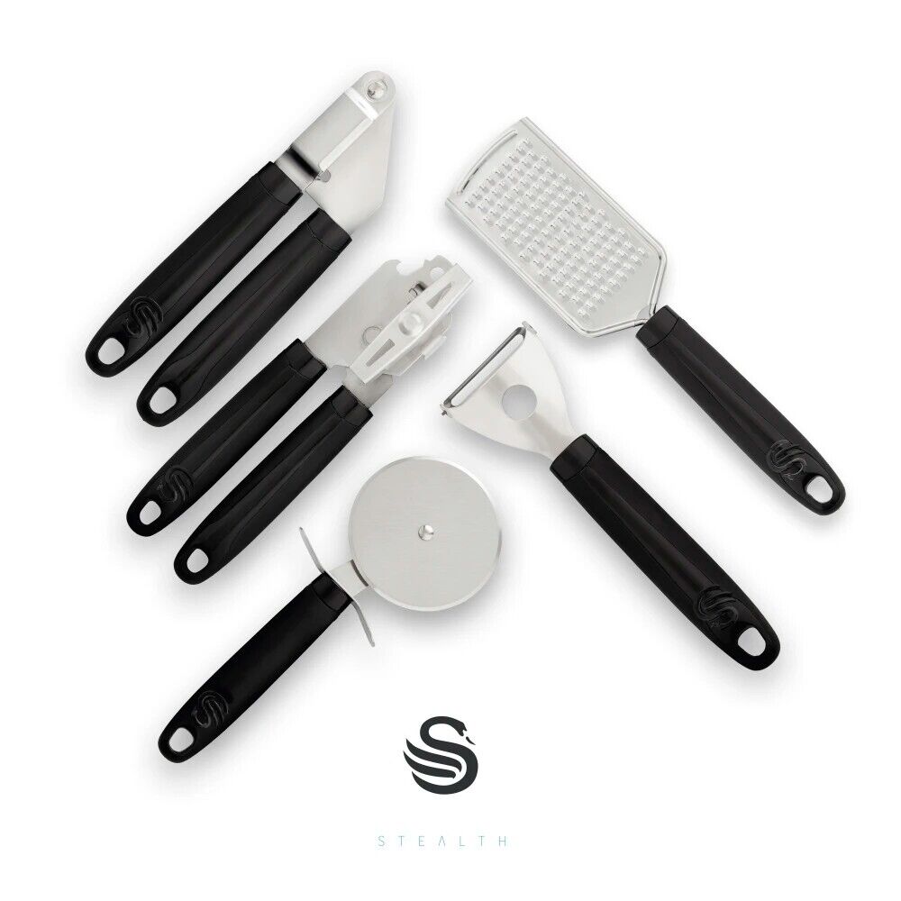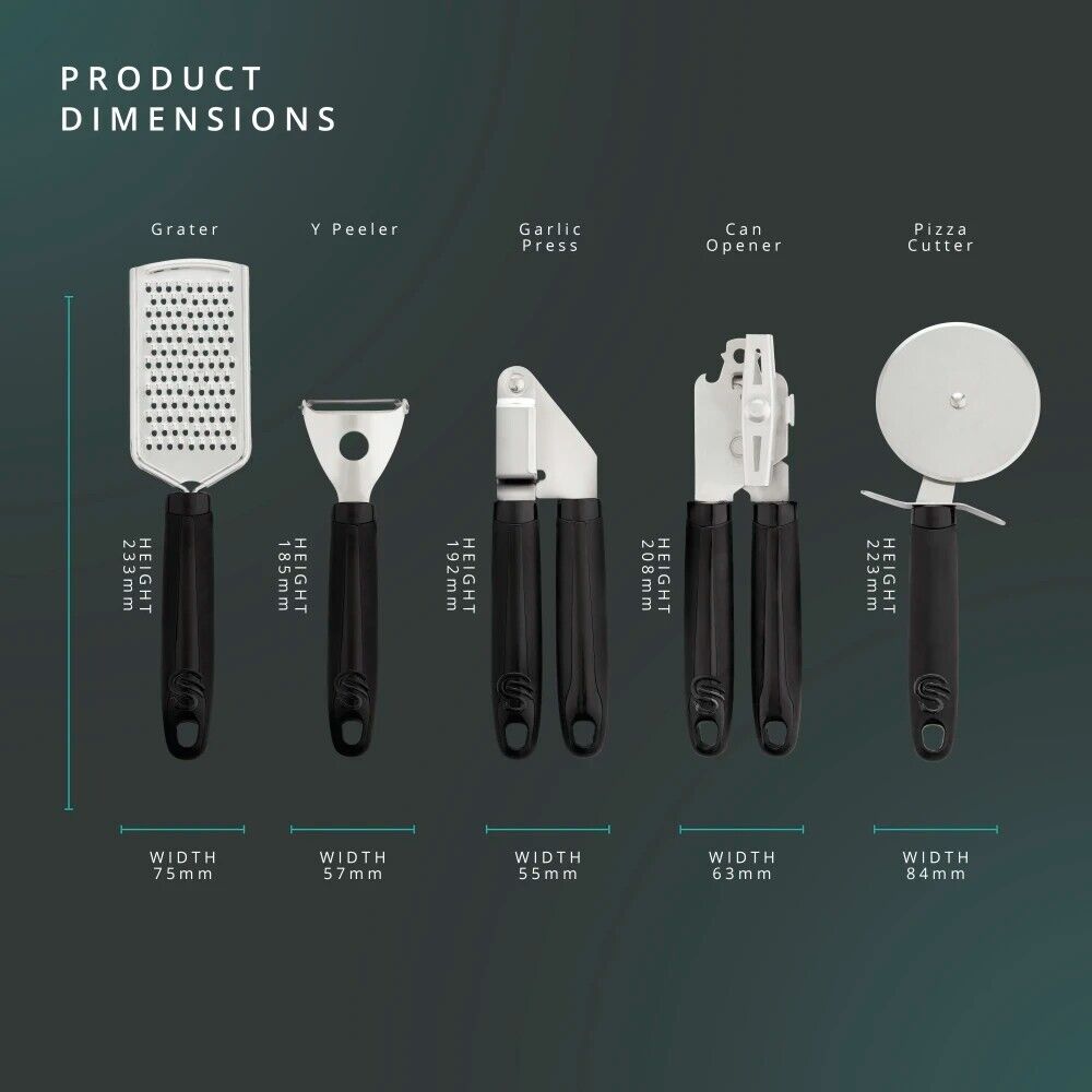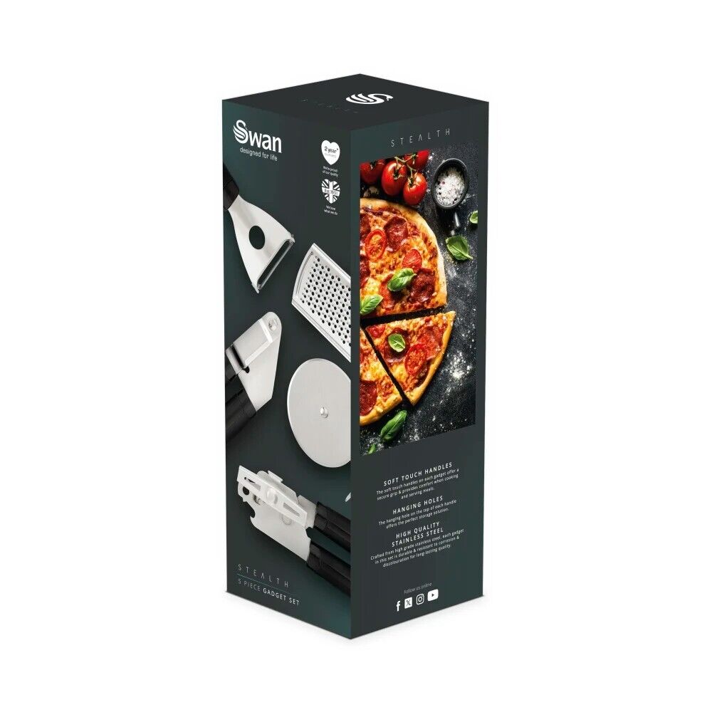SWAN Stealth 5 Piece Kitchen Gadget Set in Stainless Steel/Black SWKA61012BLKN