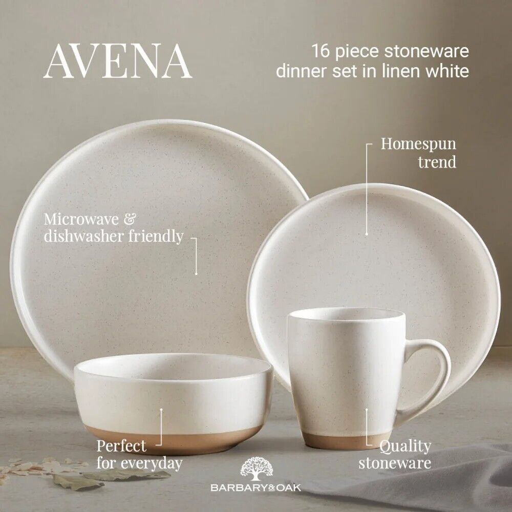 Barbary & Oak Avena 16 Piece Dinner Set in Linen White. Fast Dispatch & Free Next Working Day Delivery. 3 Year TOWER Manufacturer